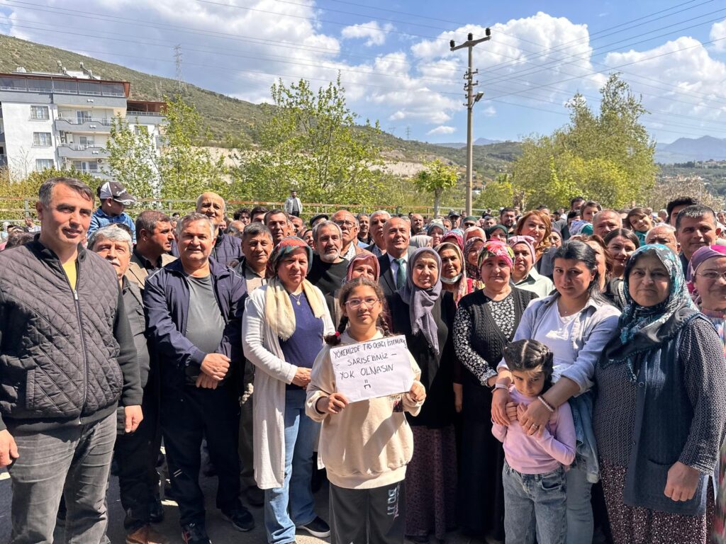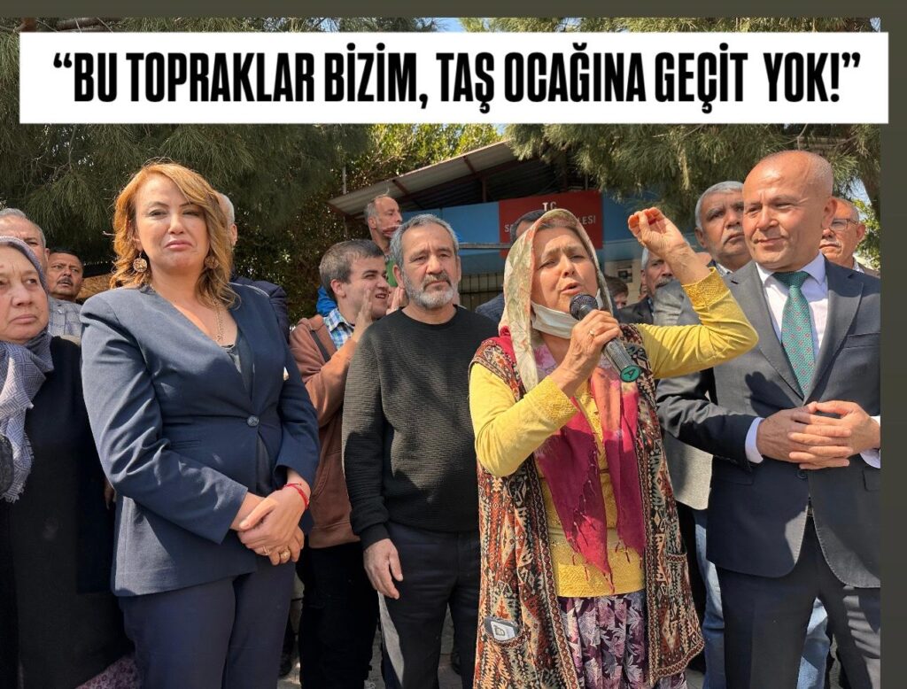 “Taş ocağı istemiyoruz” şeklinde slogan atan vatandaşlar muhtarlık önünde CHP Hatay Milletvekilli Nermin Yıldırım Kara’nın da katılımıyla tepkisini dile getirdi.