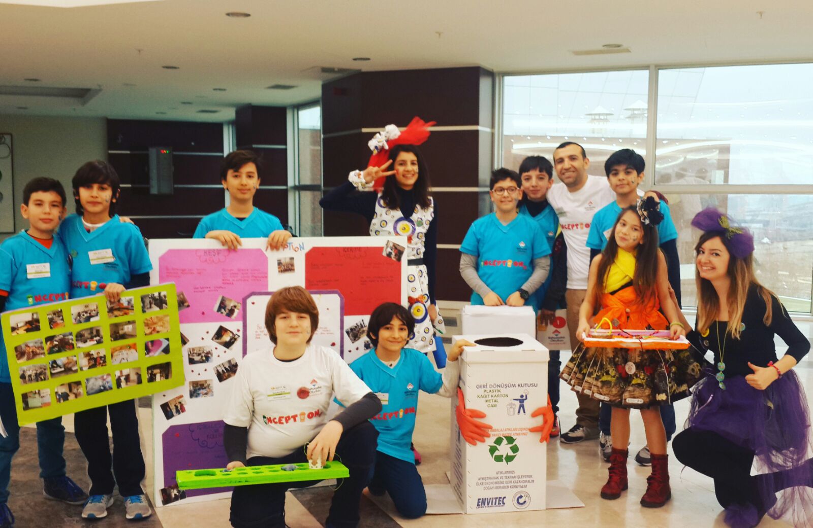 Bu yılın temasına uygun olarak geri dönüşüm üzerine bir proje hazırlayan ekip, proje hazırlıkları ve uygulaması sırasında Envitec Çevre Teknolojileri A.Ş’yle görüşmeler yapıp, katı atık fabrikasını ziyaret ettiler. Okul çevresindeki sitelerde de geri dönüşüm çalışması yürüten ‘inception’ proje sunumu ve robot performanstan 30 ekip arasında 3. oldu, ayrıca okullarına ‘Mekanik Tasarım Ödülü’ de getirdi.Pazartesi sabahı Bayrak Töreni sırasında kürsüye davet edilen takıma kupayı 4 Yaş Turuncu Sınıf öğrencilerinden Simay Reyhani verirken, takımın çalıştırıcısı ve diğer üyelerine sertifikalarını Okul Müdürü Mustafa Uçan takdim etti.