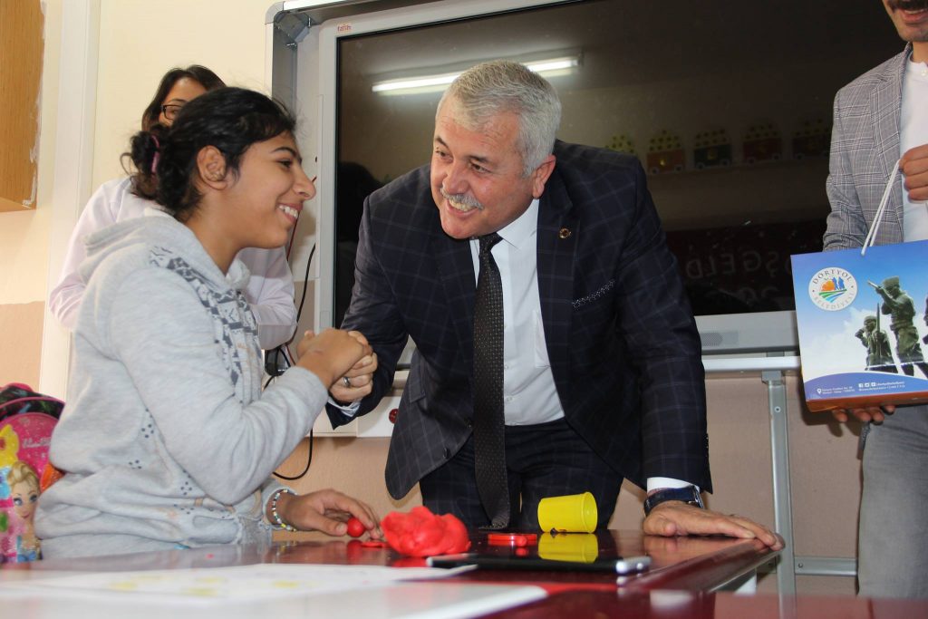 Başkan Toksoy çocuklarla sohbet ederek isteklerini dinledi. Okul müdürü ve eğitmenlere çalışmalarında başarılar dileyerek ziyaretini sonlandırdı.