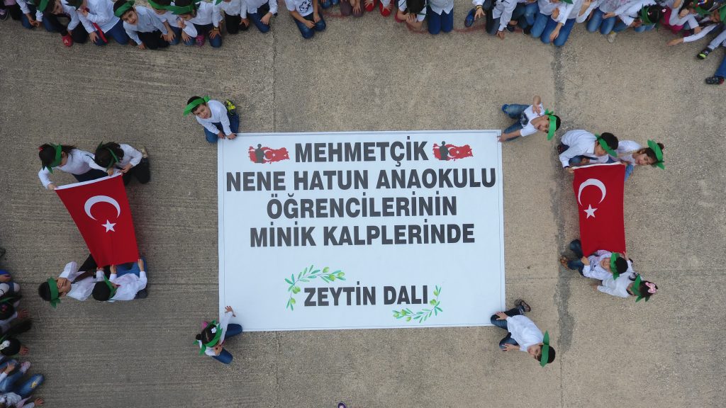 İskenderun Nene Hatun Anaokulu öğrencileri, Türk Silahlı Kuvvetlerince (TSK), terör örgütlerine karşı Suriye’nin Afrin bölgesinde başlattığı “Zeytin Dalı Harekatı”na mektuplu ve kareografili destek verdi.