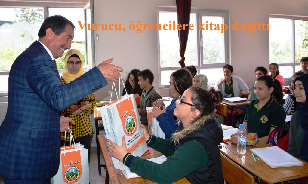 Başkan Vurucu, “Sınava az bir süre kala sizlere bir nebze de olsa yardımcı olmak anlamında soru kitaplarından oluşan setleri hediye etmek istiyorum. Zaman kısa kitaplarımız kalın, bugünden tezi yok kitaplarımızdaki soruları çözerek, hem test çözme alışkanlığınızı hızlandıracak, hem de eksik olarak gördüğünüz konuların testlerini çözerek sınavda başarılı olma yolunda bir adım daha atmış olacaksınız. Sizler ülkemizin aydınlık yarınları, muasır medeniyetler seviyesine gelme yolumuzda bizlerin umudusunuz. Kendinize güvenin, çok düzenli ve verimli çalışın. Gireceğiniz Liselere Giriş Sınavınız, sizlerin üniversite seçiminde ve bundan sonraki yaşantınızda hangi dala yöneleceğinizi belirleyen en önemli sınavlardan biridir. Sizlere şimdiden başarılar diliyorum.” İfadelerini kullanarak, öğrencilere kitapları takdim etti.