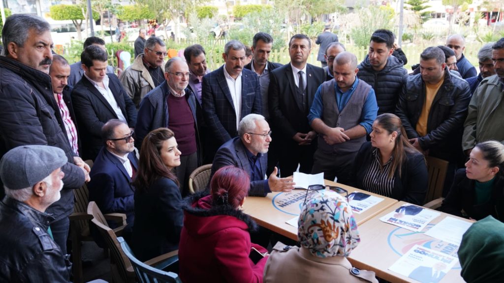 Cumhur İttifakı AK Parti İskenderun Belediye Başkan Adayı Fatih Tosyalı, daha sonra 4 Nolu Sosyal Tesisi’nde belediye çalışanlarını ziyaret etti, burada vatandaşlarla bir araya geldi. Gittiği tüm işyerlerinde büyük bir ilgiyle karşılanan Tosyalı, esnafın sorun ve sıkıntılarını dinleyip projeleri hakkında bilgiler verdi. İlçede belediyecilik hizmetlerine yeni bir anlayış getirmeye hazırlandıklarını belirten Başkan Adayı Fatih Tosyalı, “Birlik ve beraberlik içinde gayret gösteren arkadaşlarımızla çok çalışarak, İskenderunumuz’a inşallah çok hizmetler kazandıracağız. Her kapıyı çalıp herkesle kucaklaştık. İlçemiz için birbirinden güzel projelerimiz var” dedi.