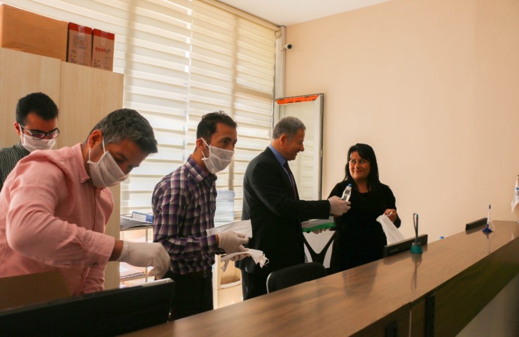 Hatay Büyükşehir Belediyesi Su ve Kanalizasyon İdaresi Genel Müdürlüğü(HATSU), Dünya geneline yayılan Korona virüs (Covid-19) salgınını önleme ve tedbir çalışmaları kapsamında personellerine eldiven, maske ve el dezenfektanı dağıtımı gerçekleştirdi.