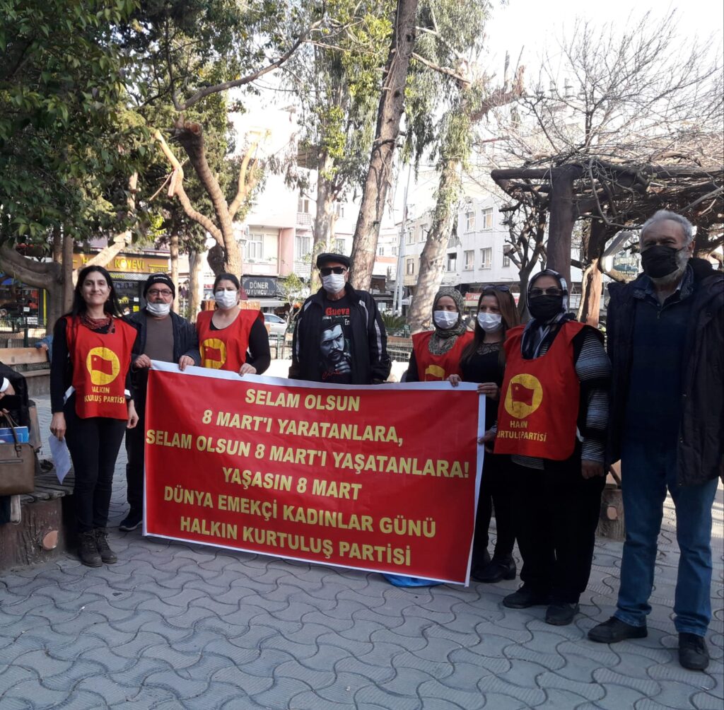 HKP’li Kadınlar, “Selam Olsun 8 Mart’ı Yaratanlara, Selam Olsun 8 Mart’ı Yaşatanlara Yaşasın 8 Mart Dünya Emekçi Kadınlar Günü” yazılı pankart açtı.