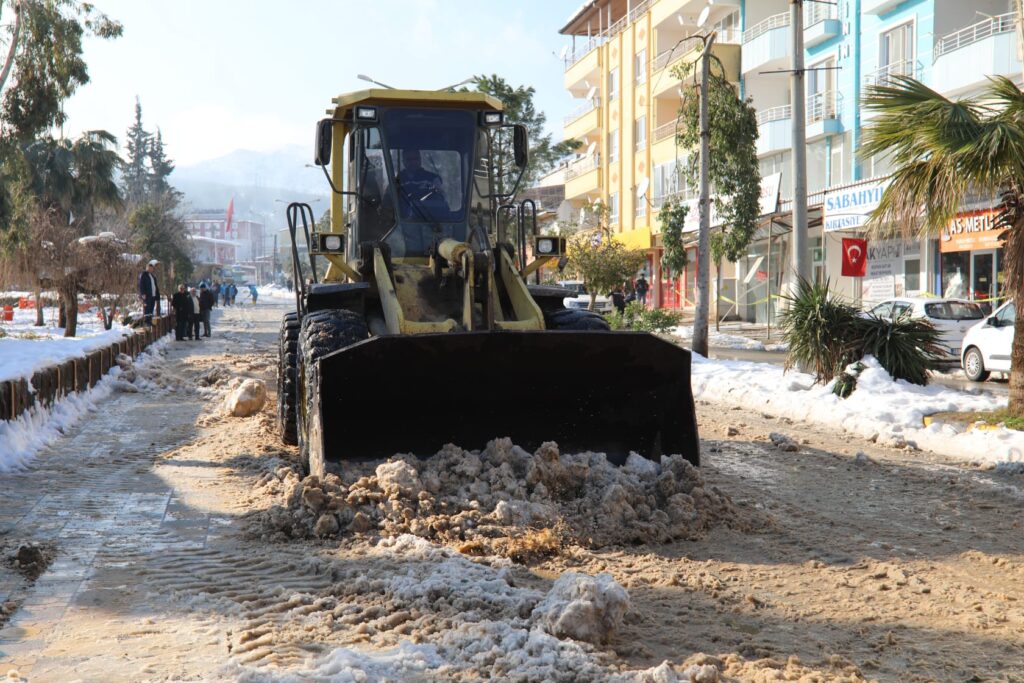 Hatay Büyükşehir Belediyesi, kar yağışından en çok etkilenen ilçelerin başında gelen Hassa ve Yayladağı’ndaki kar küreme ve yol açma çalışmalarına hız kesmeden devam etti.