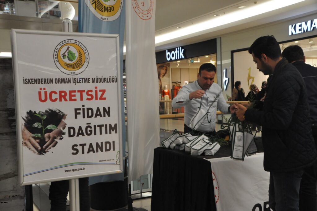 “21 Mart- 26 Mart Orman Haftası” dolayısıyla İskenderun Kaymakamlığı’nın uhdesinde ve İskenderun Orman İşletme Müdürlüğü’nün koordinesinde icra edilen programda AVM içerisindeki vatandaşlara ücretsiz olarak fidan dağıtımı yapılarak, doğaya olan hassasiyet gözler önüne serildi.