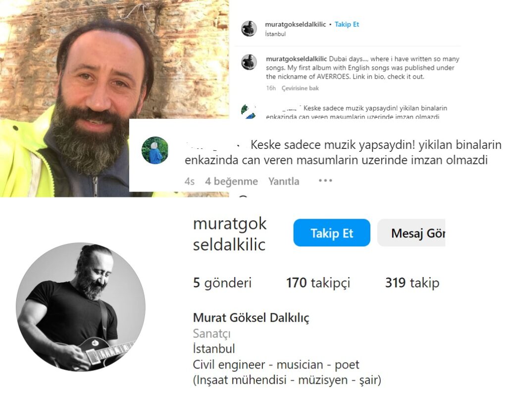 Dalkılıç’ın bir takipçisi de “Keşke sadece müzik yapsaydın! yıkılan binaların enkazında can veren masumların üzerinde imzan olmazdı” diye yorumla duygularını dile getirdi.