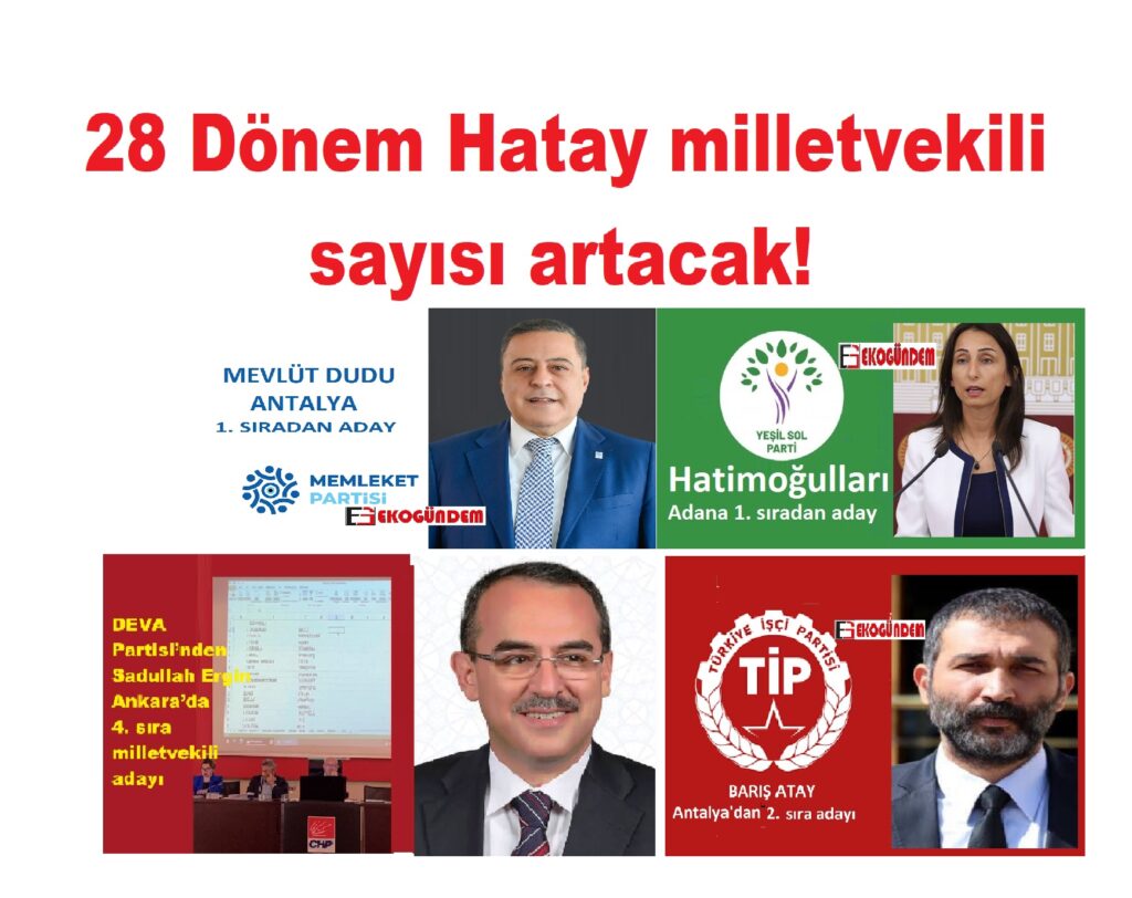 28. Dönem Hatay milletvekili sayısı artacak! Hatay doğumlu olan milletvekilleri; 14 Mayıs Pazar günü Adana, Ankara, Antalya’dan seçilecek sıralarda yer buldu.