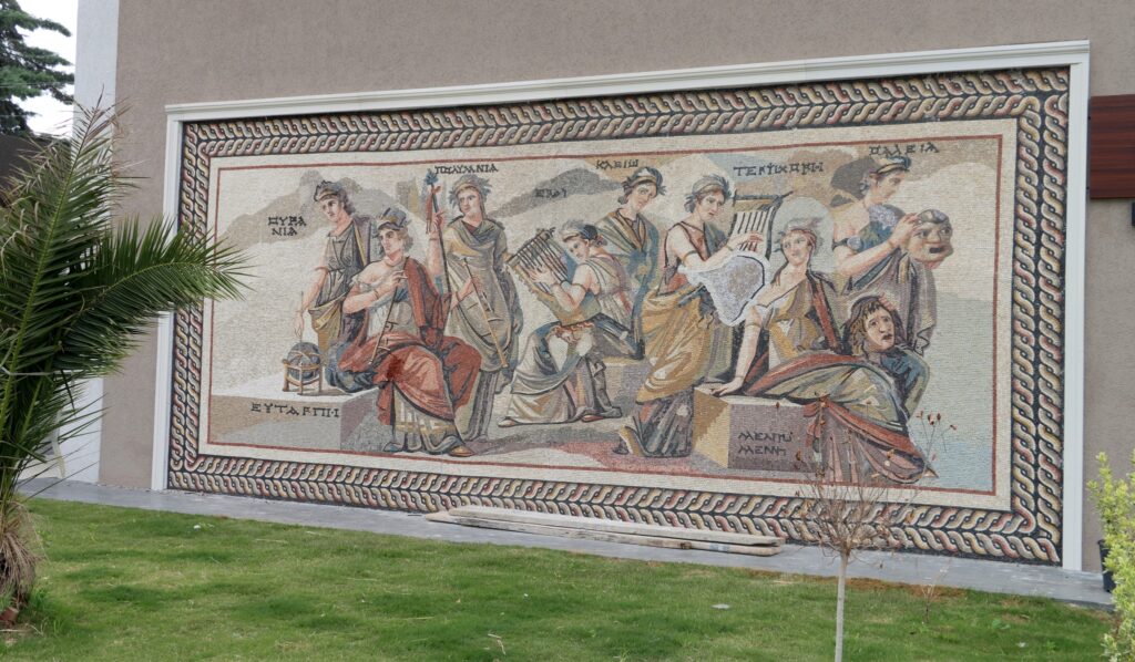 Antik mozaik sanatını Türkiye’de yeniden canlandıran öncü isimler Ahmet ve Mehmet Bostancı kardeşler, Hatay Kültür ve Sanat Çarşısı’na görkemli bir eser kazandırdı. Çarşının girişindeki cep sinemasının duvarında yer alan “Antik Dönem Tiyatro Mozaiği”, 8 metre uzunluğu ve 3.5 metre genişliğiyle sanatseverlerin hayranlığını kazanıyor.