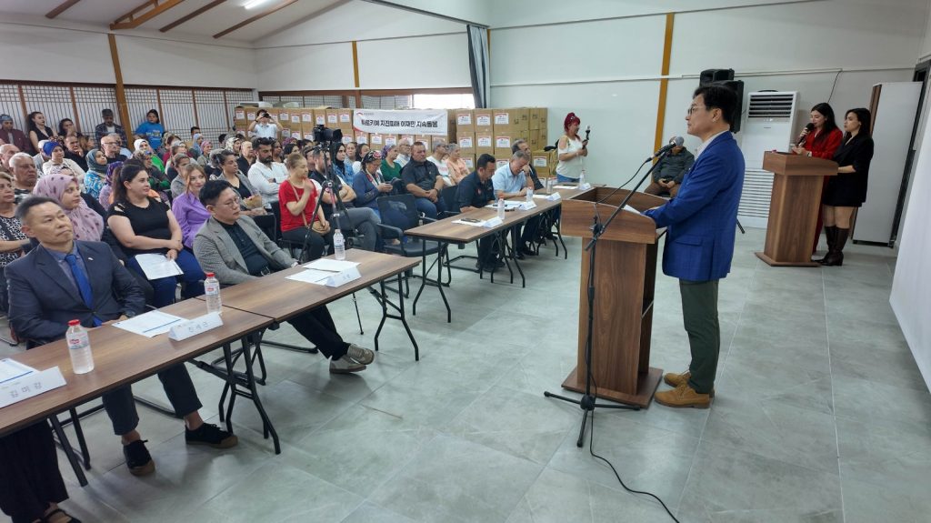Dostluk ve dayanışma mesajları ile Güney Kore Mahallesi yaşam alanında yaşayan depremzedelere hijyen kitleri hediye edildi.