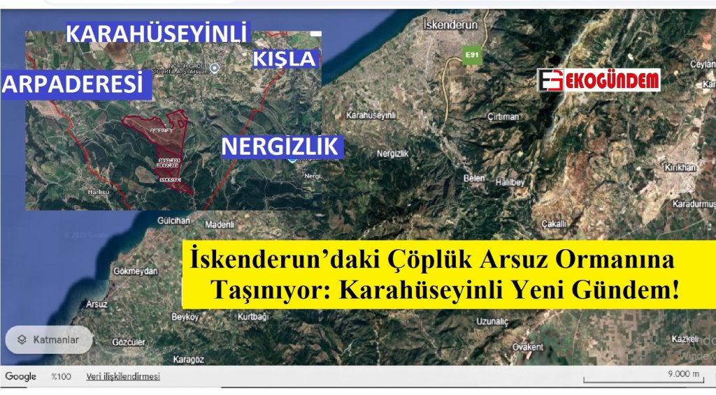 Arsuz’un Harlısu, Nergizlik, Kozaklı ve Kışla kırsal mahallelerinin kesişim noktasında yer alan Karahüseyinli Mahallesi’ndeki ormanlık alan, yeni çöp sahası olarak planlandı. Şubat 2025 de Hatay Büyükşehir Belediyesi meclisinden karar oy birliği ile çıktı. HBB tarafından Mahalli Çevre Kurulu’na sunulan teklifte, dört ayrı parsel bu amaçla gösterildi: