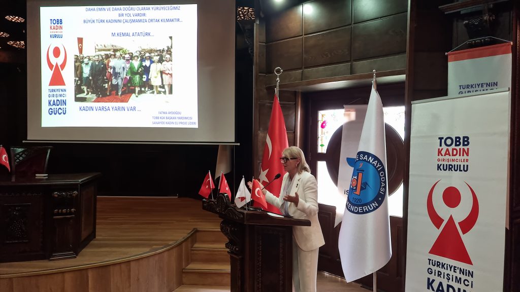 İskenderun Ticaret ve Sanayi Odası ile TOBB Hatay Kadın Girişimciler Kurulu iş birliğinde, Hatay Kadir Teksöz Toplantı Salonu’nda düzenlenen lansman programında; kadın istihdamını artırmanın toplumsal kalkınmaya etkisi hakkında bilgiler aktarılırken, kamu kurum ve kuruluşlarının il müdürleri sayısal veriler paylaşarak kadınların iş hayatındaki yerini korumak, iyileştirmek ve daha fazla istihdam sağlayabilmek amacıyla gerçekleştirilen projeler ile verilen destekler hakkında bilgiler verdi.