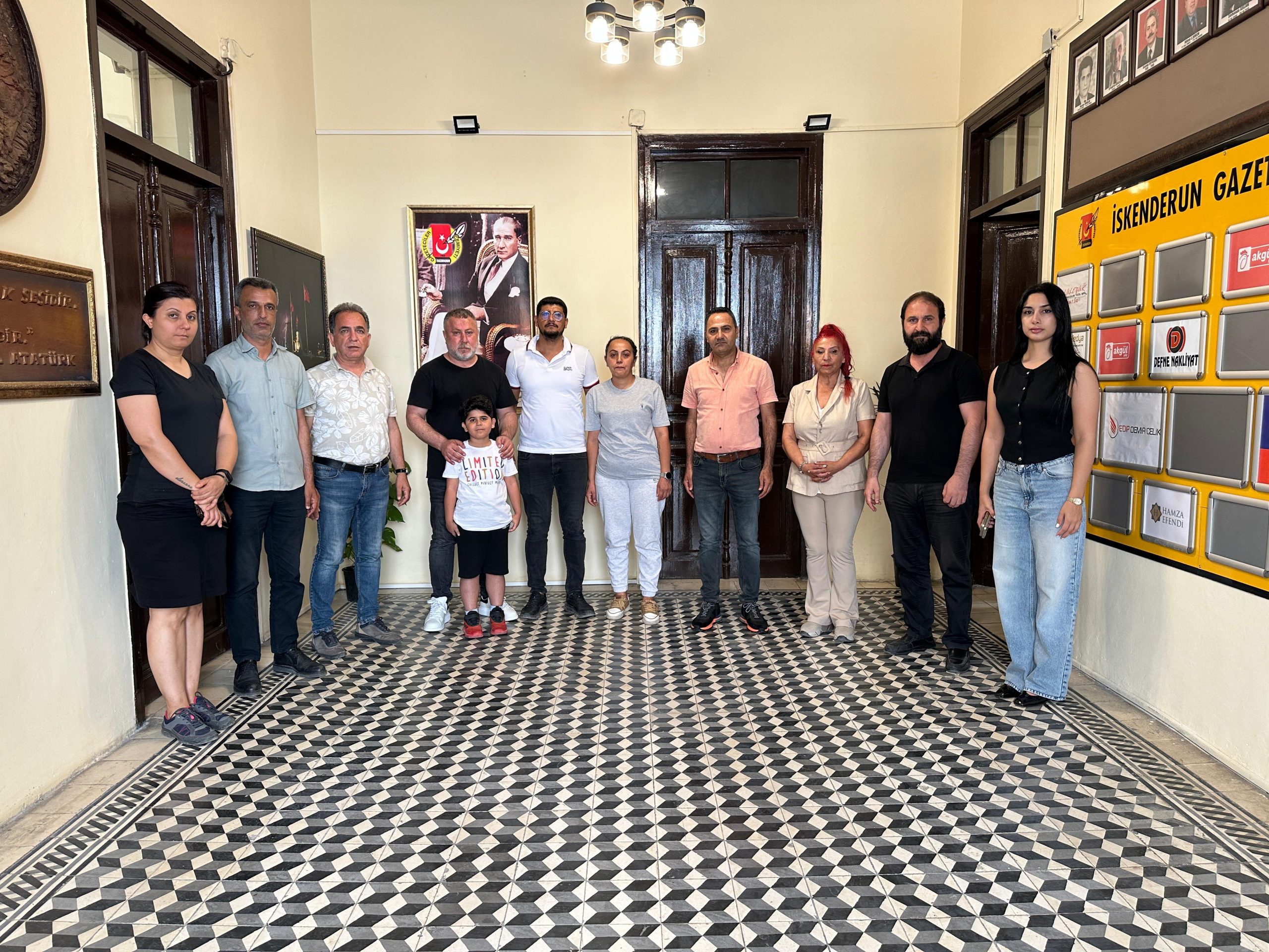 Anne Seher Şeker, Baba Efkan Şeker ve 8 yaşındaki Fırat Miraç Şeker, İskenderun Gazeteciler Cemiyeti’nde gazetecilere yardım kampanyası çalışmalarıyla ilgili bilgi verdiler.