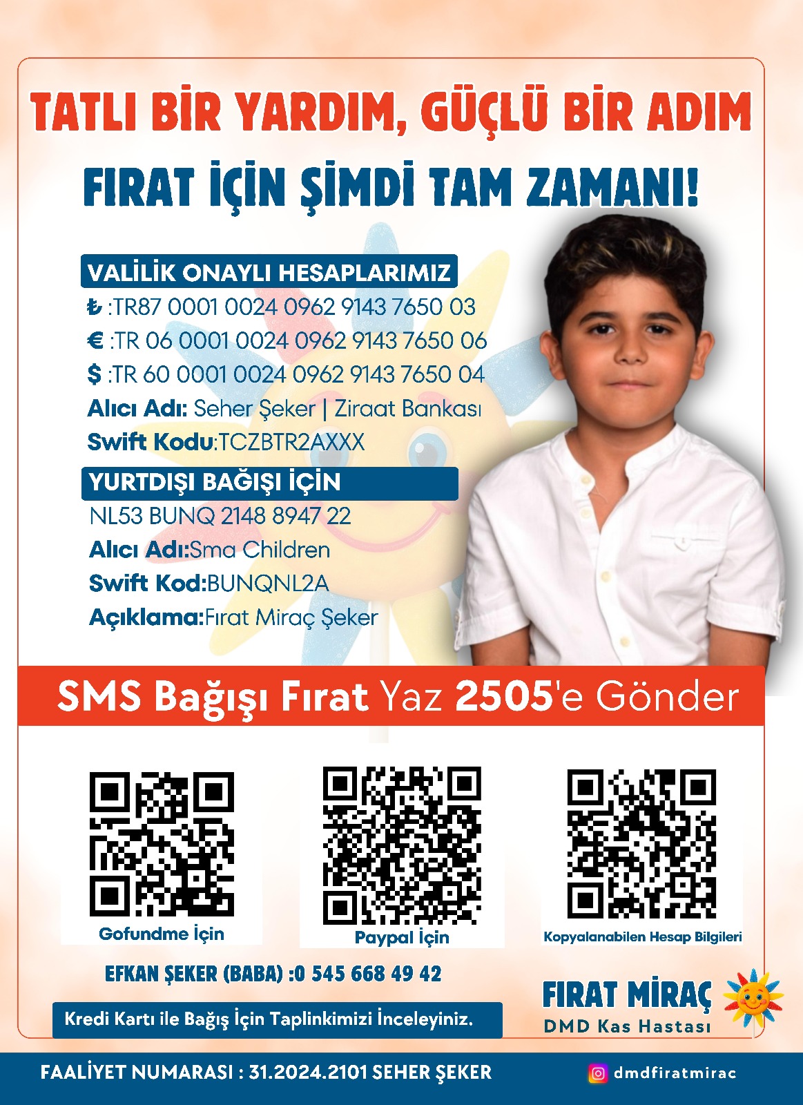 Adı Fırat Miraç Şeker, 8 yaşında. Üç yaşında rahatsızlanması sonrasında ailesi tarafından hastaneye kaldırıldı. Yapılan tahliller sonrasında Fırat Miraç Şeker’in DMD kas hastalığı şüphesinin bulunduğu söylendi.