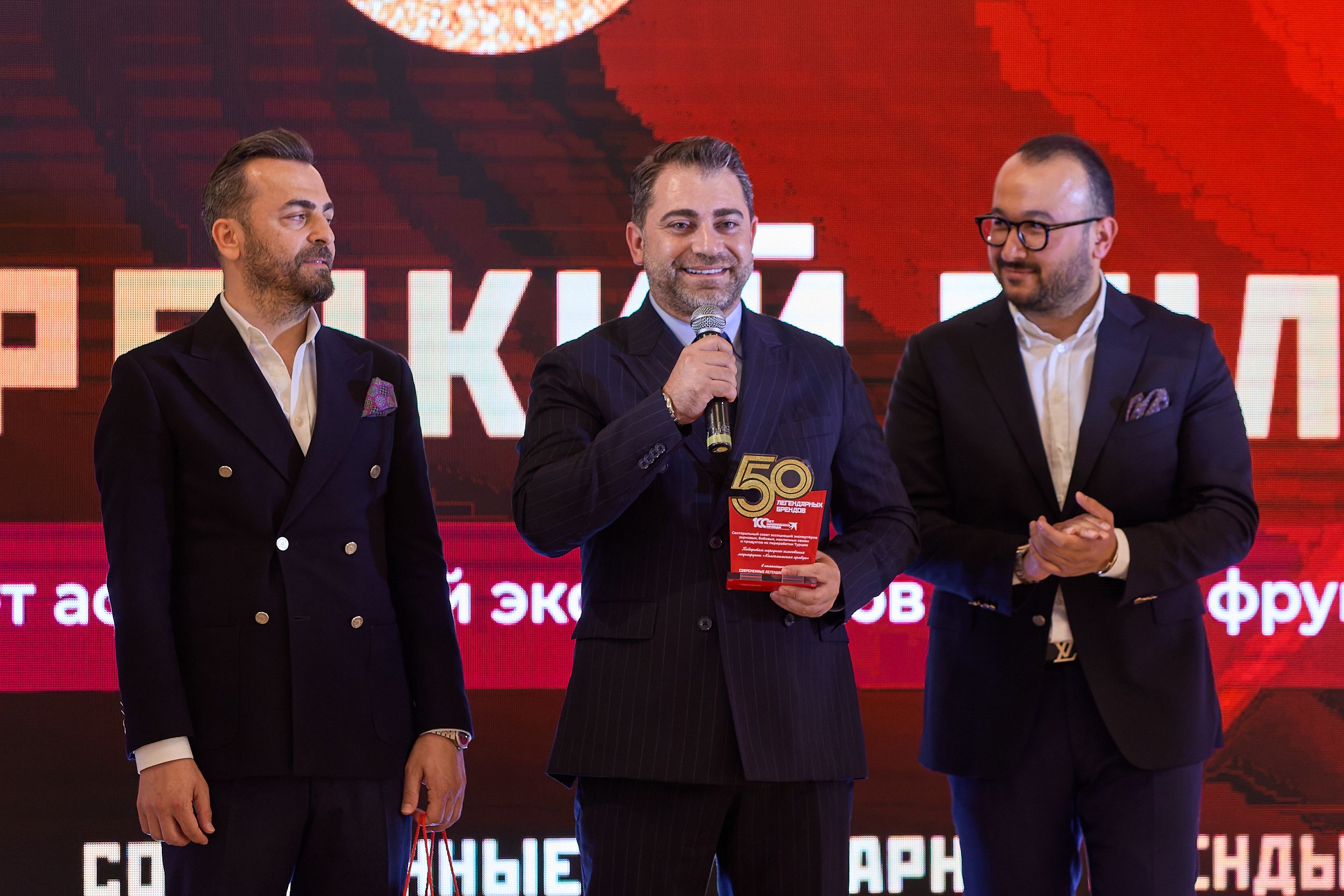 Komsomolskaya Pravda Genel Müdür Yardımcısı Gyuzyal Hisyamutdinova da “Komsomolskaya Pravda olarak 100’üncü yılımızı kutladığımız bu özel gecede Rusya’nın en büyük marka ödülü ‘50 Efsane Marka Ödülleri’ne halk oylaması ile seçilmiş olan Türk Yaş Meyve Sebzesi ve Türk Bulguru Tanıtım Kampanyalarını gerçekleştiren kurumları tebrik ediyorum. Pravda olarak Türk sektörlerinin Rusya’daki tanıtımlarını destekliyoruz, desteklemeye de devam edeceğiz.” dedi.