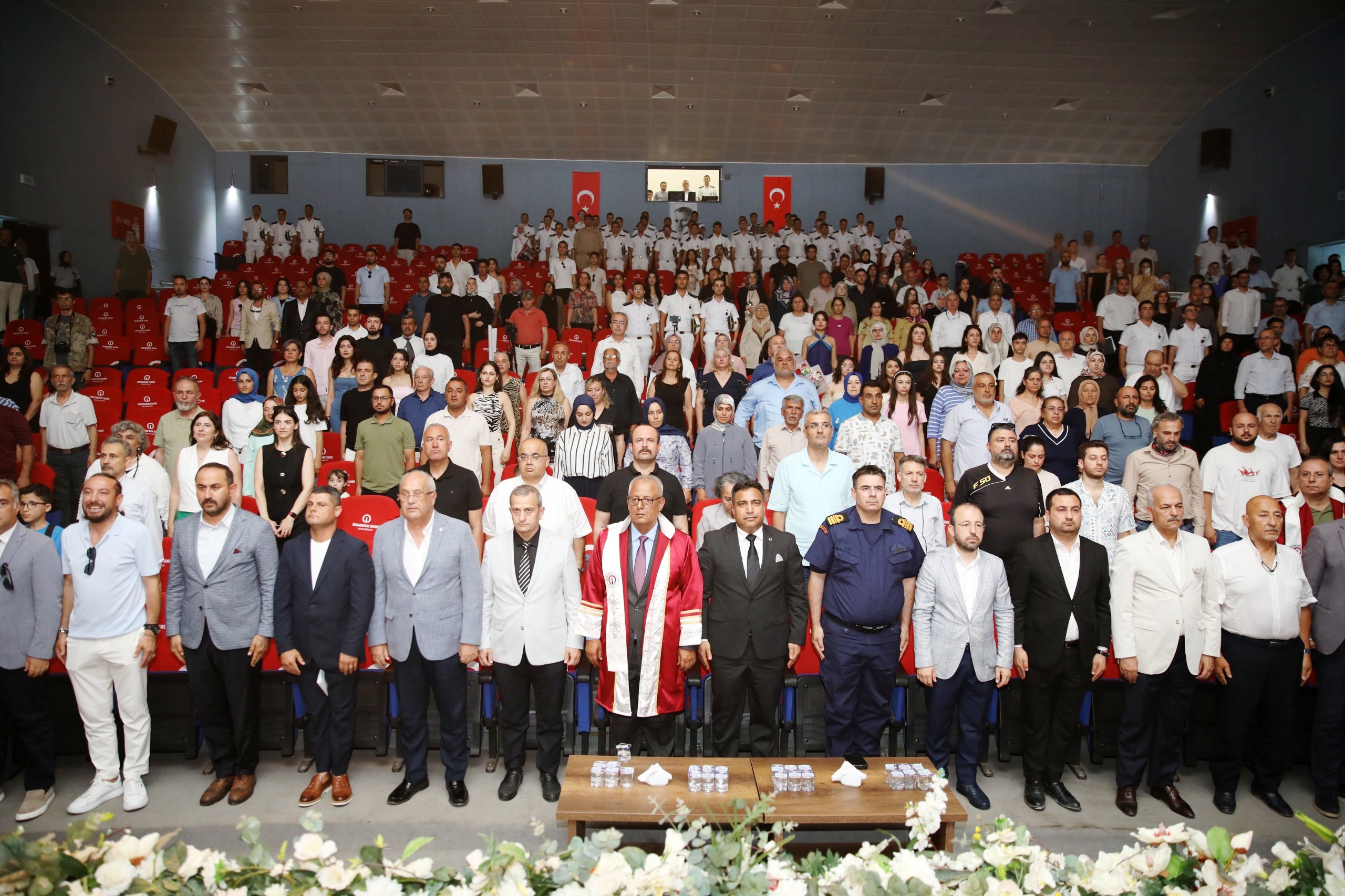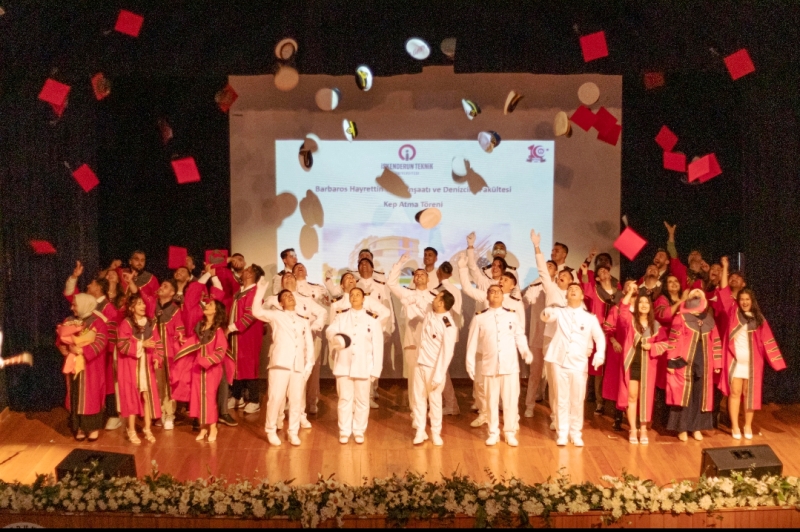 Tören, Deniz Ulaştırma İşletme Mühendisliği öğrencilerinin geleneksel bayrak devir-teslimi ve mezuniyet yeminiyle devam etti. Mezuniyetin en coşkulu anı ise keplerin havaya atıldığı finalde yaşandı.