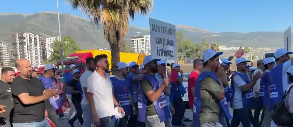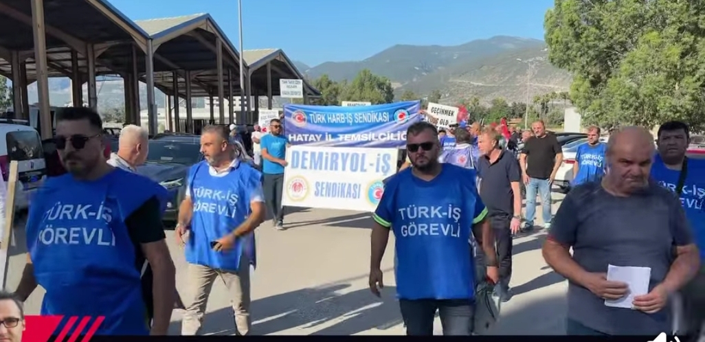 İskenderun’da Türk-İş’e bağlı sendikaların üyesi işçiler, tren garından sendika binası önüne kadar sloganlarla yürüyerek hükümete ve kamu işverenlerine mesaj verdi. “Geçinemiyoruz!”, “Sadaka Değil, Hakkımızı İstiyoruz!” sloganlarıyla gerçekleşen yürüyüşün ardından Türk-İş Hatay İl Başkanı Çakır Varan, kitlenin önünde sert bir açıklamada bulundu.