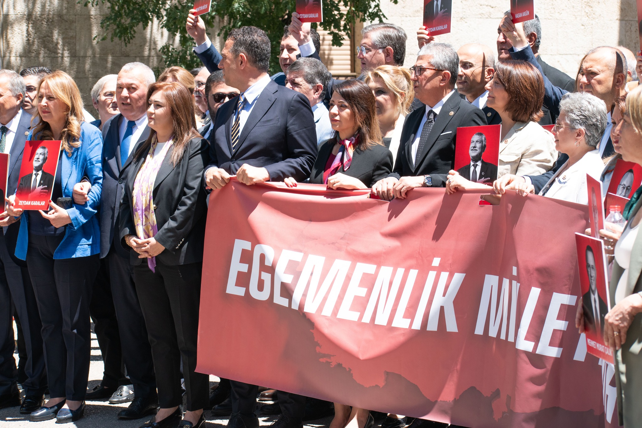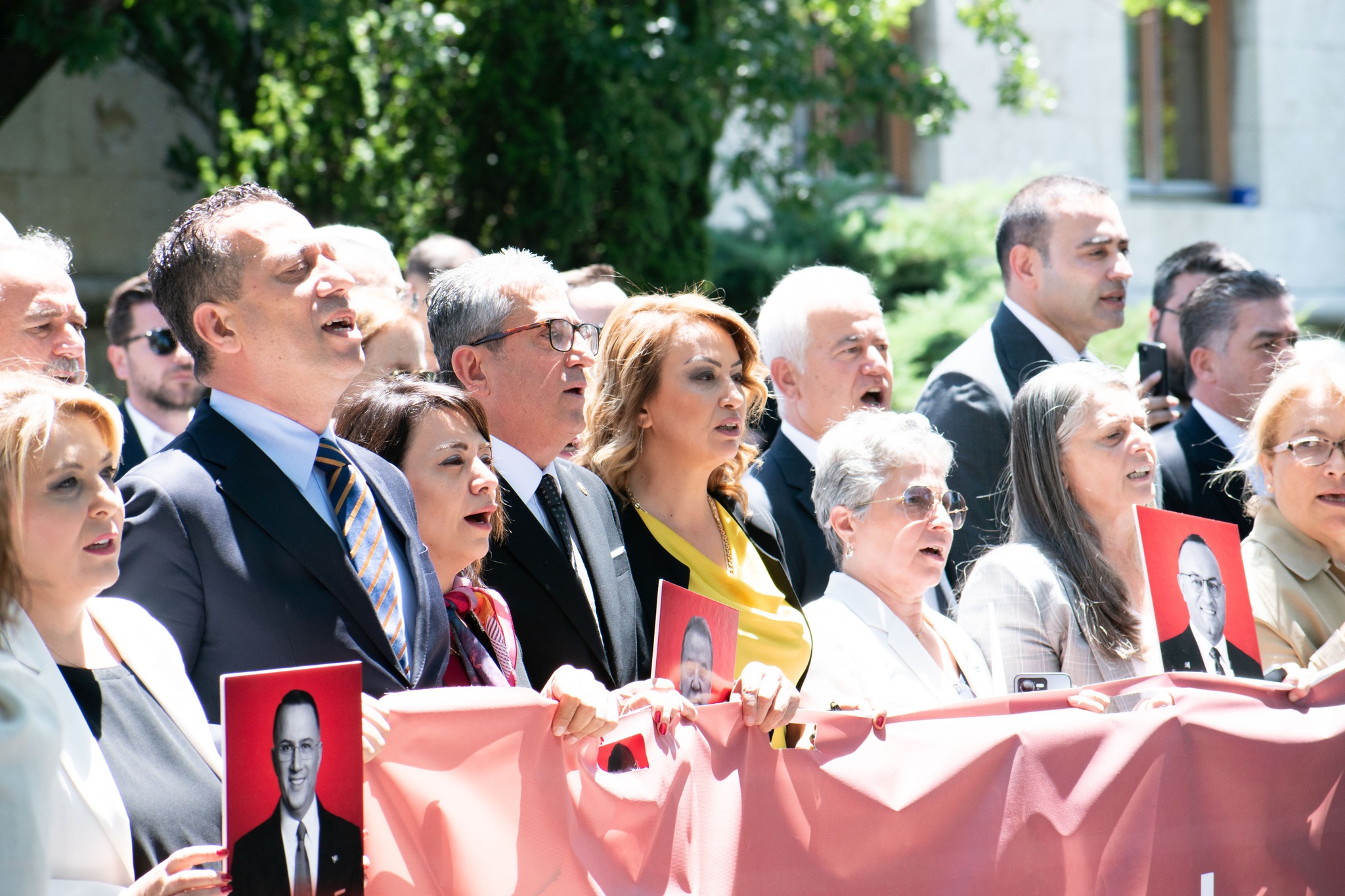 “Cumhuriyet Halk Partisi milletvekilleri olarak bu düşman hukuku uygulamasına karşı sokağa çıktık. Türkiye bir hukuk devletidir şakasını yapmaktan başka meziyeti olmayan Adalet Bakanlığı’nın önüne geldik. Burada bir kez daha yüksek sesle söylüyoruz: Tüm tutuklu belediye başkanlarımız derhal serbest bırakılsın!”