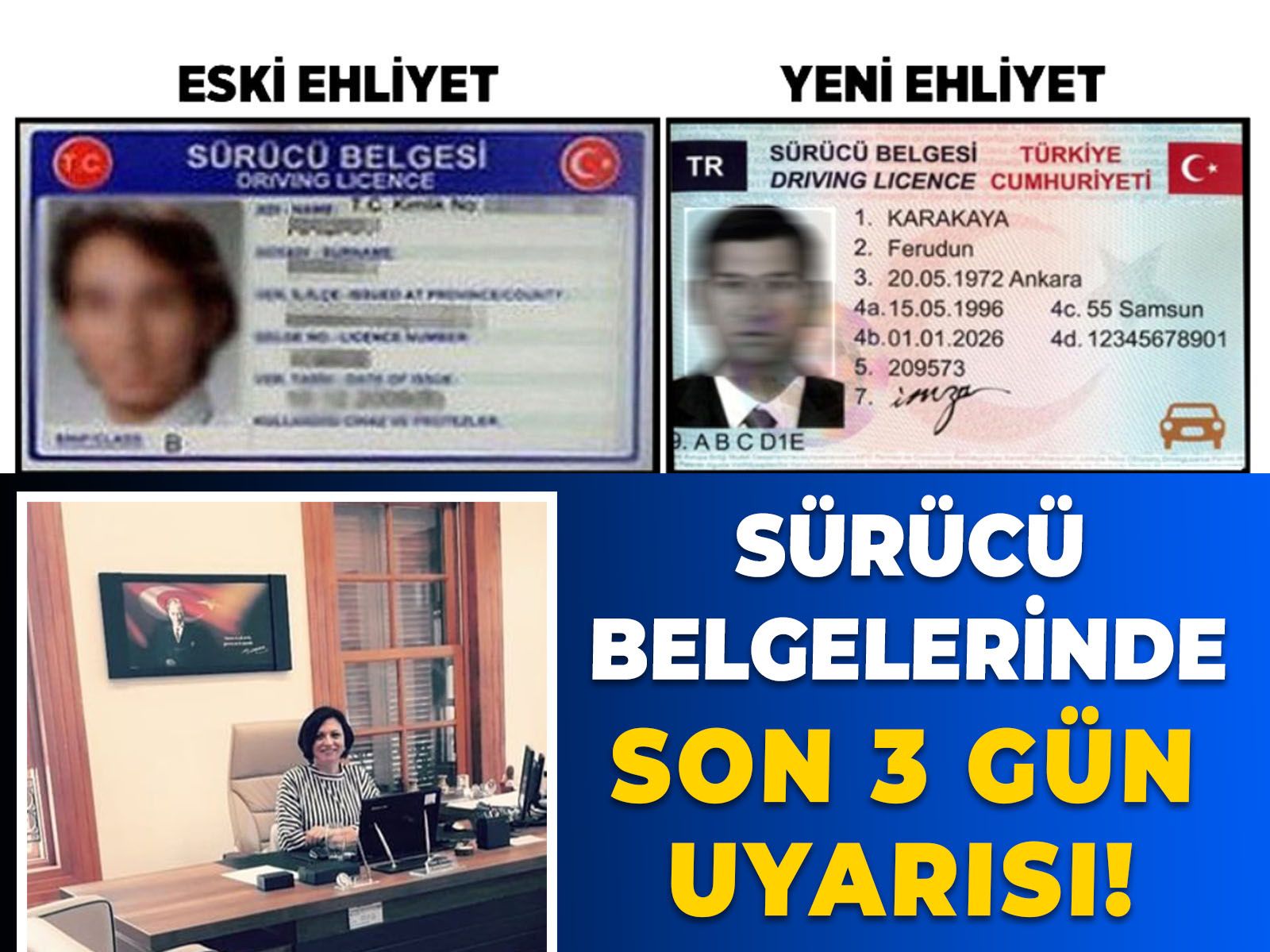 Nüfus ve Vatandaşlık İşleri Genel Müdürlüğü tarafından yapılan açıklamaya göre Hatay ve diğer illerde bulunan sürücülerin eski tip sürücü belgelerini değiştirmeleri için son 3 gün uyarısı yapıldı.