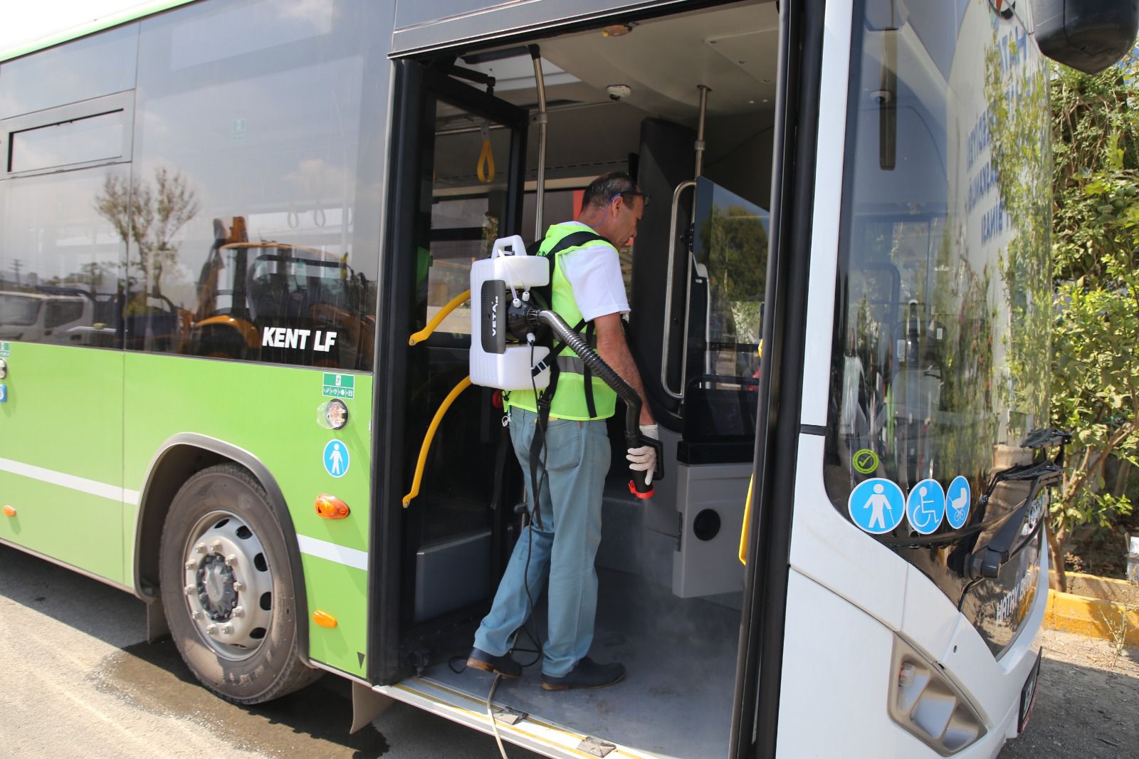 Hatay Büyükşehir Belediyesi, Ulaşım Dairesi Başkanlığına bağlı toplu ulaşım araçlarında dezenfekte çalışmalarına başlandı.