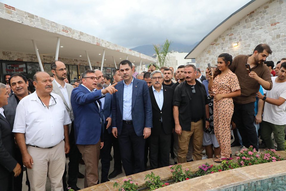 HATAY -İSKENDERUN  Bir dizi ziyaret ve incelemelerde bulunmak üzere Hatay’a gelen Çevre, Şehircilik ve İklim Değişikliği Bakanı Murat Kurum, İskenderun’da yapımı tamamlanan Dönerciler Çarşısı’nın açılışını gerçekleştirdi.