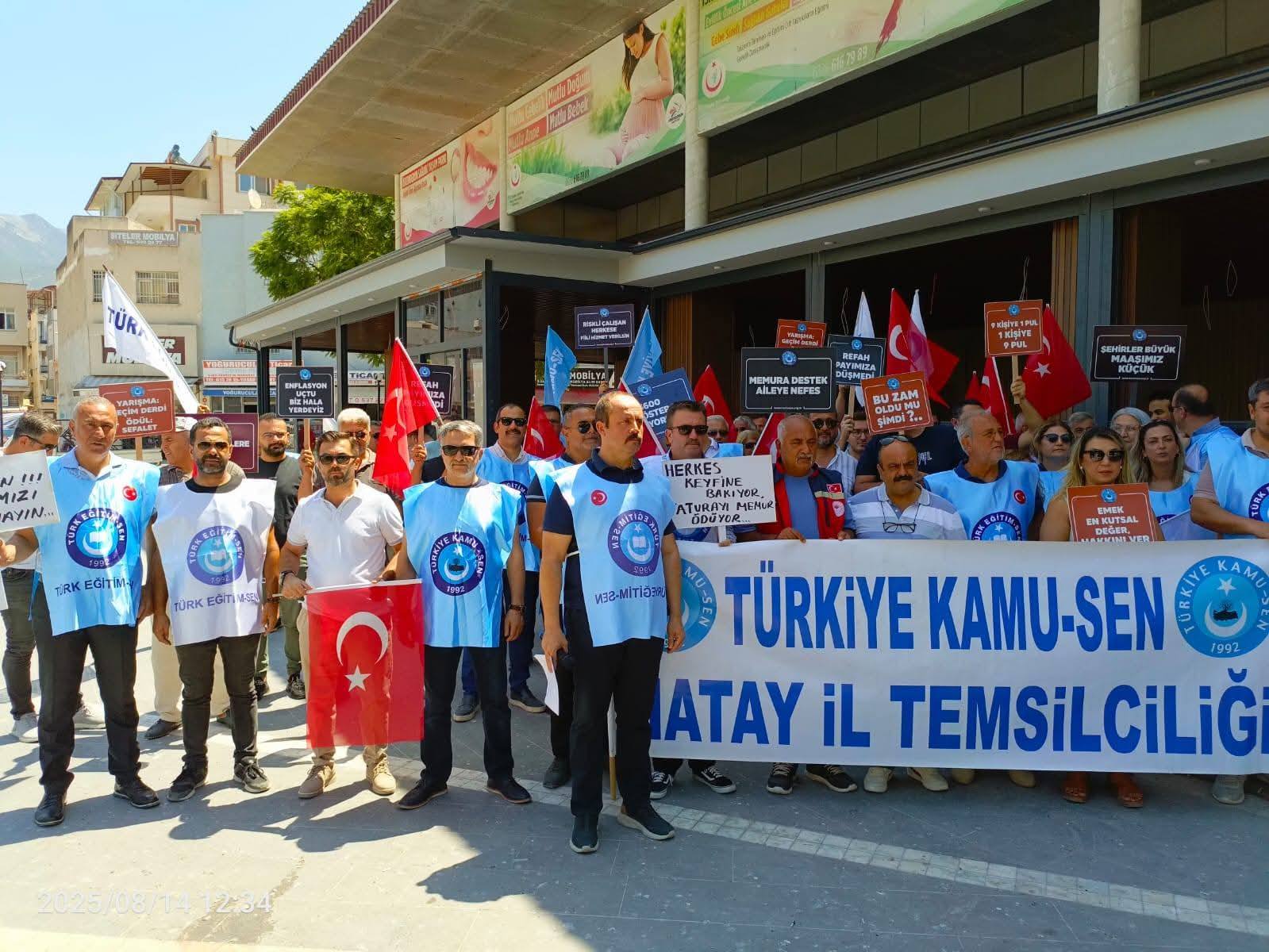 Türkiye Kamu-Sen Hatay İl Temsilciliği, İskenderun Sağlıklı Yaşam Parkı’nda düzenlediği basın açıklamasıyla hükümetin toplu sözleşme zam teklifini kabul etmediklerini duyurdu.