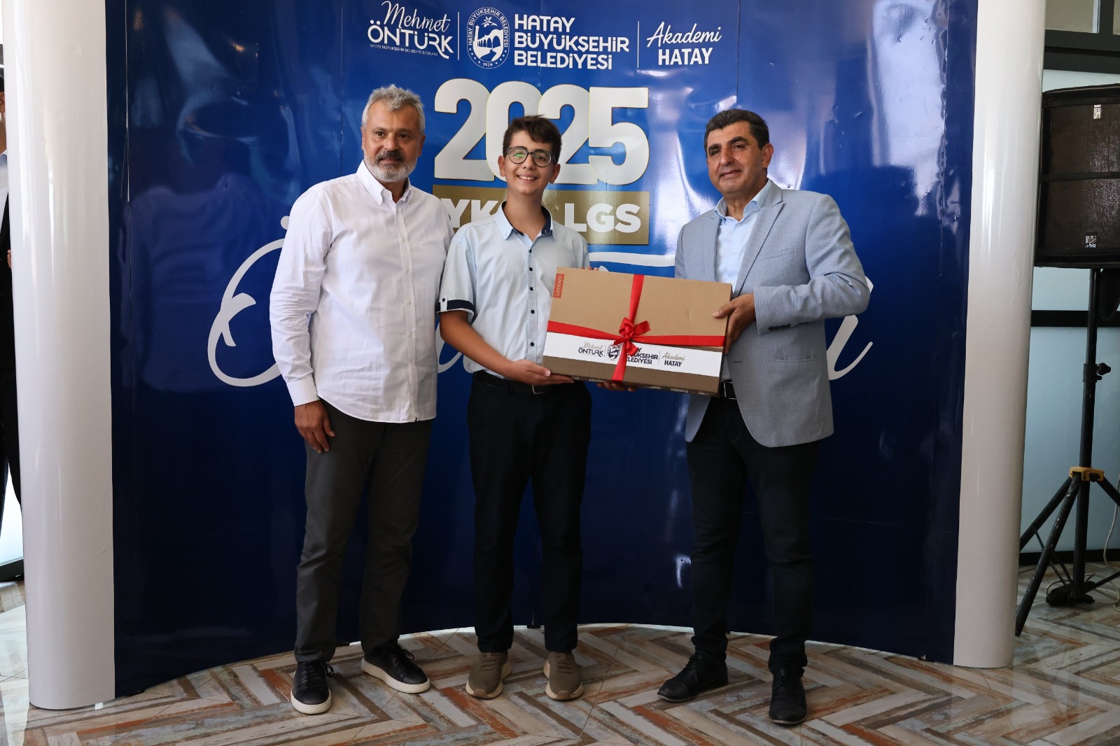 “Hatay’ın Evlatlarına Değer” sloganıyla düzenlenen törende, YKS’de ilk 1000’e giren 32 üniversite öğrencisine, LGS’de Hatay ilinde ilk 10’a giren öğrencilere dizüstü bilgisayar hediye edildi.
