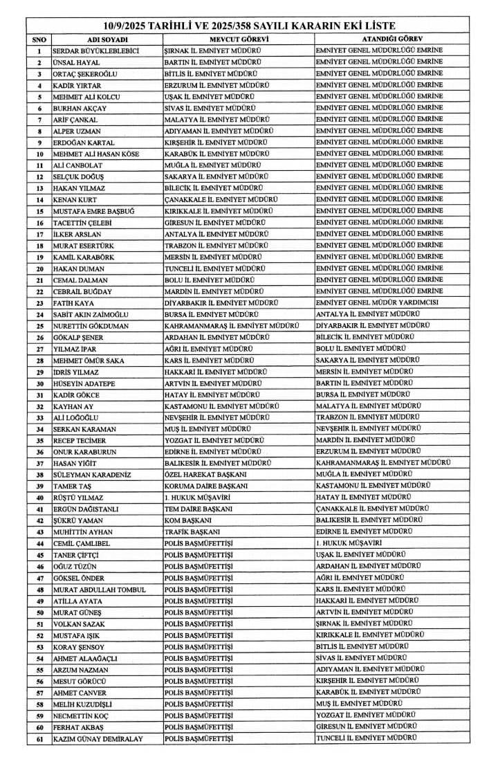 Cumhurbaşkanlığı’ndan yapılan açıklamaya göre, 2025/358 sayılı kararname ile Emniyet Genel Müdürlüğü personelinin hizalarında belirtilen görevlere atamaları gerçekleştirildi. Bu kapsamda Rüştü Yılmaz’ın Hatay İl Emniyet Müdürü olarak atanması da bu kararnamede yer aldı. Atama kararı 10 Eylül 2025 tarihinde Resmi Gazete’de yayımlandı.