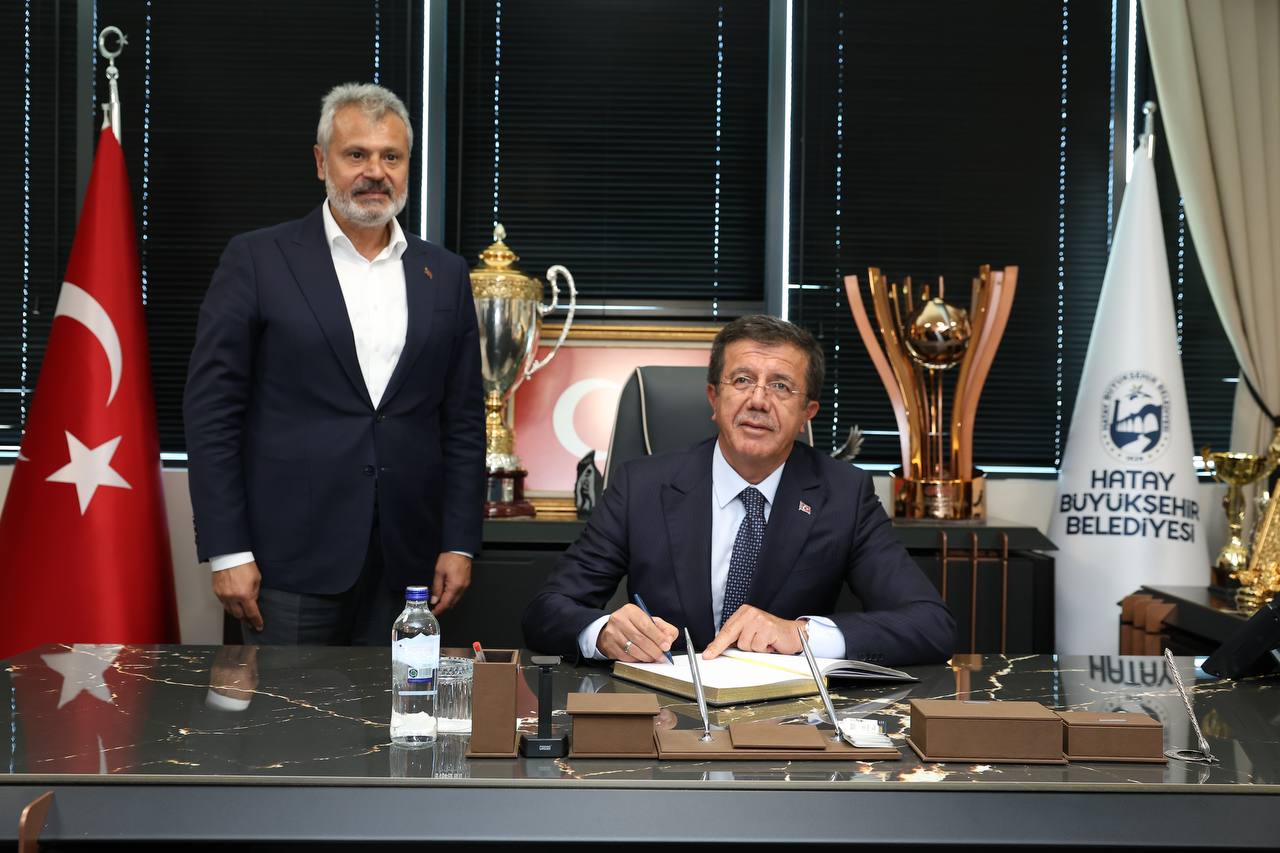GENEL BAŞKAN YARDAK Parti Genel Başkan Yardımcısı ve Ekonomi İşleri Başkanı Nihat Zeybekçi ve beraberindeki heyet Hatay Büyükşehir Belediyesi’ni (HBB) ziyaret etti..