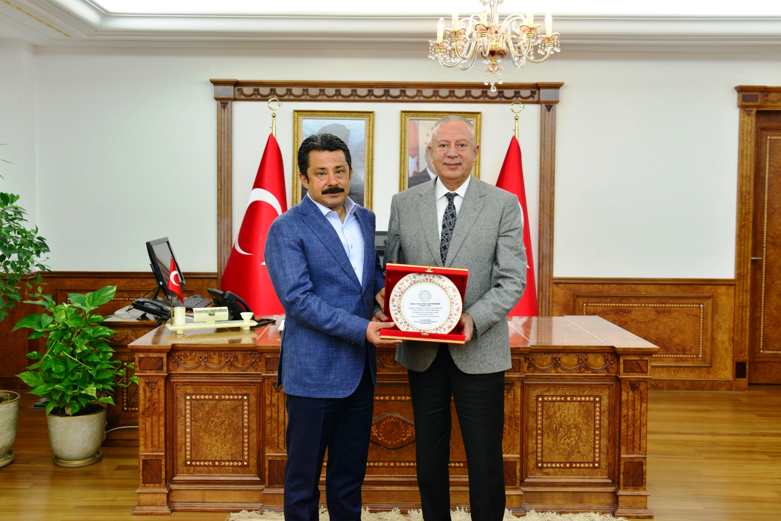 Akdeniz Eczacı Teknisyenleri Federasyonu Başkanı Cemal Çelik ve beraberindeki heyet, Kırşehir Valisi Murat Sefa Demiryürek’i ziyaret ederek plaket sundu.