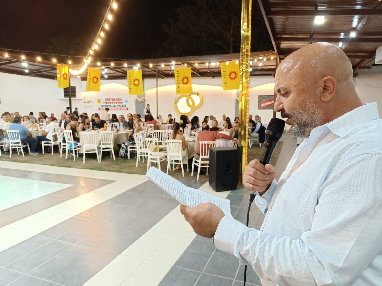 “5 Ekim Dünya Öğretmenler Günü dolayısıyla düzenlediğimiz yemeğe katılan Genel Mali Sekreterimiz Ramazan Gürbüz’e, Arsuz Belediye Başkanımız Sami Üstün’e, ezgileriyle gecemize renk katan Erdal Güney’e, Grup Sıla’ya, siyasi parti, dernek, sendika, kurum temsilcilerimize ve her koşulda Eğitim Sen diyen mücadele arkadaşlarımıza, üyelerimize teşekkür ediyoruz. 5 Ekim Dünya Öğretmenler Günü kutlu olsun.”