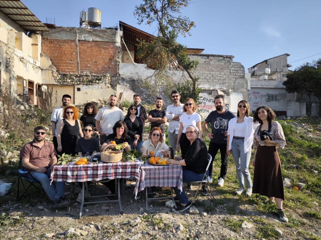 - Photo1: Zenginler Atölyesi gönüllüleri, Eski Antakya evlerinin avlularında yeniden kurdukları sofraların hikayesini belgeliyor. (Ocak 2025)