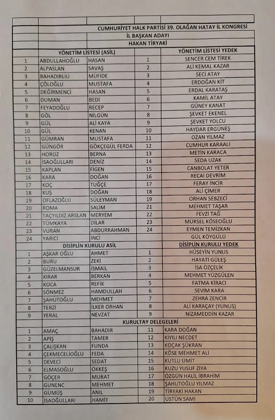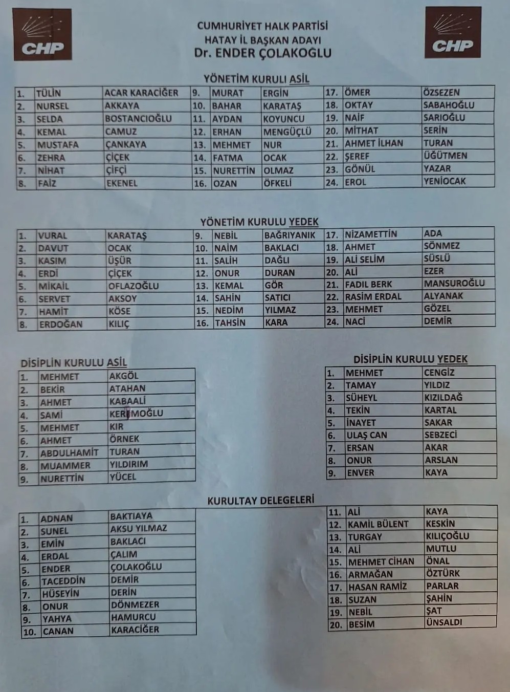 CHP HATAY İL kONGRESİNDE YARIŞAN LİSTELERDE FOTOĞRAFLARIN SONUNDA: