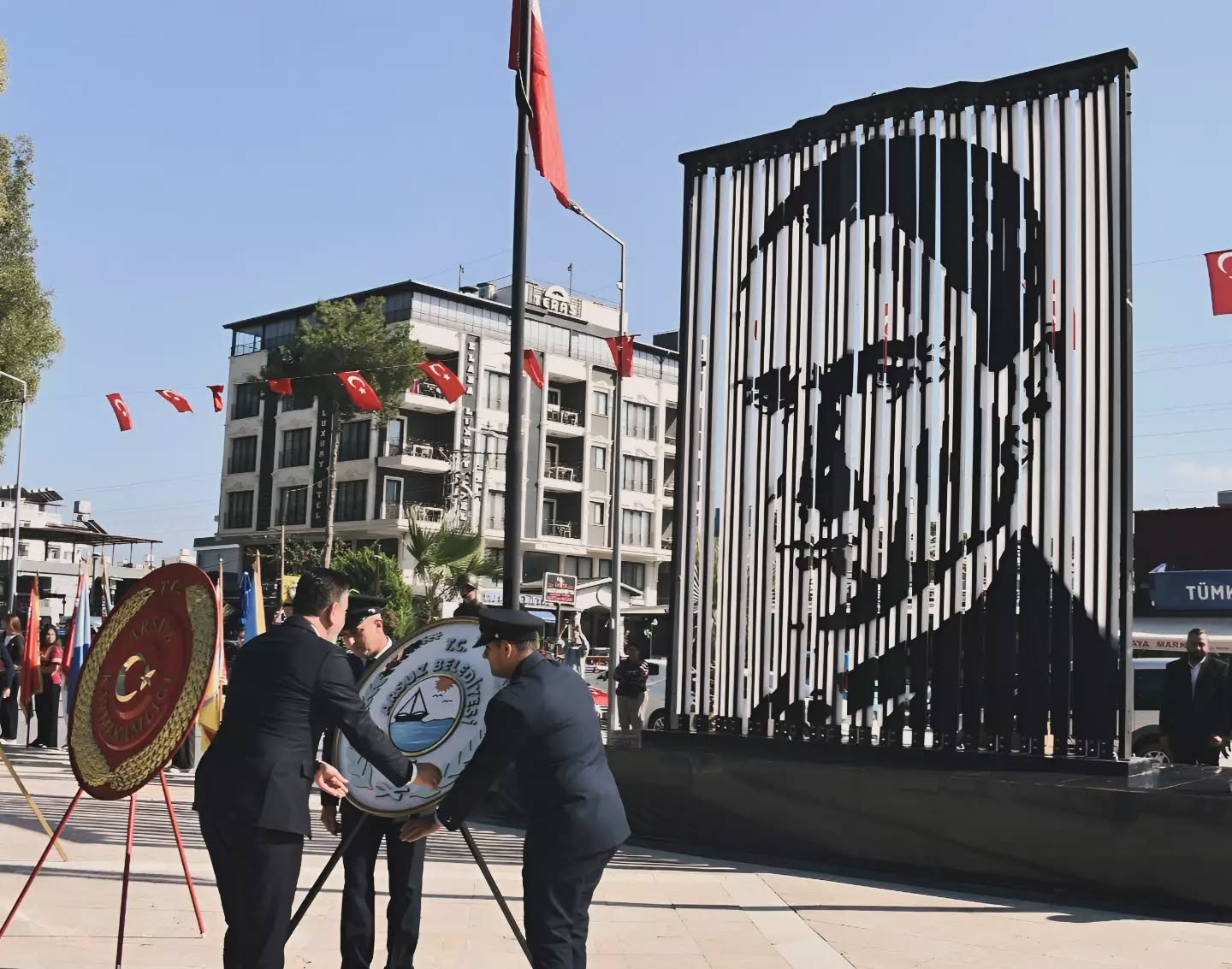 Kutlama programı kapsamında Arsuz Atatürk Kent Meydanı’nda, Ulu Önder Gazi Mustafa Kemal Atatürk’ün anıtına çelenk sunuldu.