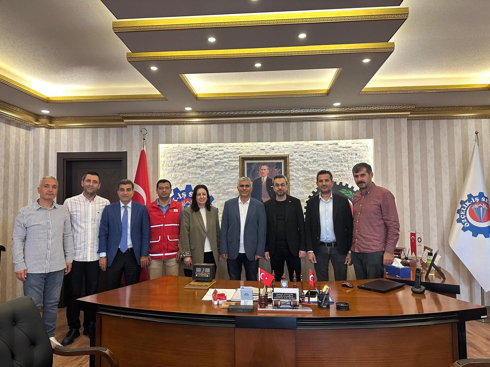 Kızılay Orta Akdeniz Bölge Kan Merkezi Müdürü Dr. Volkan Karaca, Bölge Kan Yöneticisi Esra Çakar ve İskenderun Kan Merkezi Müdürü Dr. İsmail Sade, Özçelik-İş Sendikası İskenderun Şube Başkanı Mehmet Güngör ve yönetim kurulu üyelerini sendika binasında ziyaret etti .