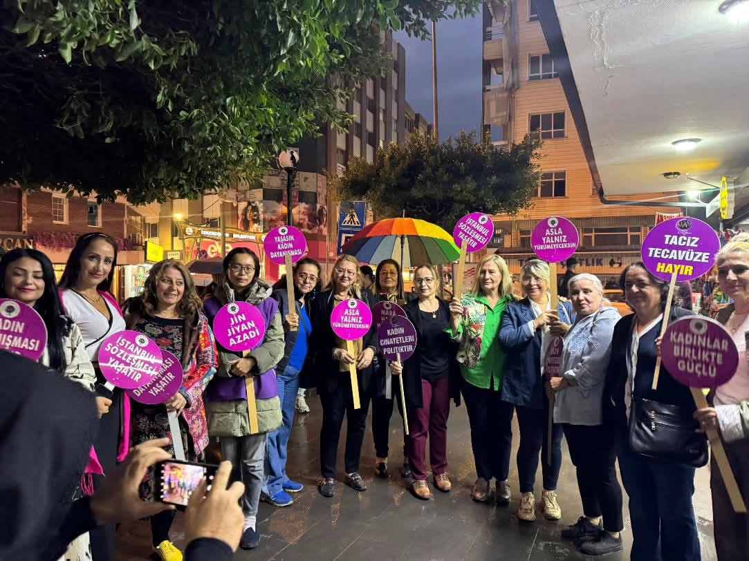 Hatay – 25 Kasım Kadına Yönelik Şiddete Karşı Uluslararası Mücadele Günü kapsamında İskenderun’da kadınlar, İskenderun Kadın Platformu’nun çağrısıyla bir araya gelerek şiddete, eşitsizliğe ve hak gasplarına karşı ses yükseltti.