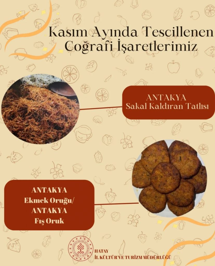 Hatay, zengin mutfak kültürünü belgeleyen iki yeni coğrafi işareti daha gastronomi mirasına kazandırdı. Kasım ayında tescil edilen Antakya Sakal Kaldıran Tatlısı ile Antakya Ekmek Oruğu/Fış Oruk, kentin kültürel değerler listesine resmen eklendi.