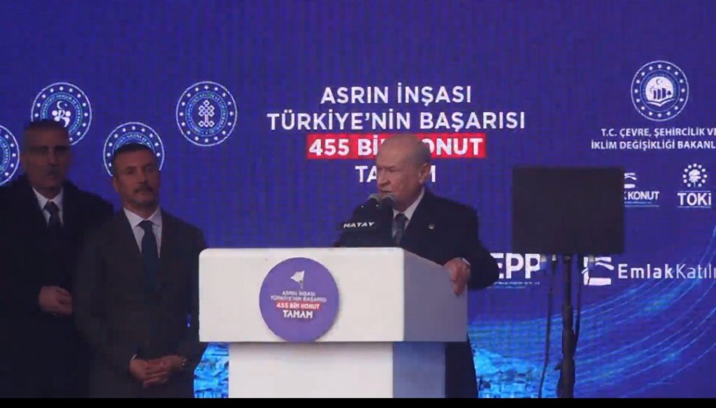 Bahçeli, teslim edilen konutların ve Hatay’da hizmete alınan 157 yatırımın hayırlı olmasını dileyerek konuşmasını tamamladı.