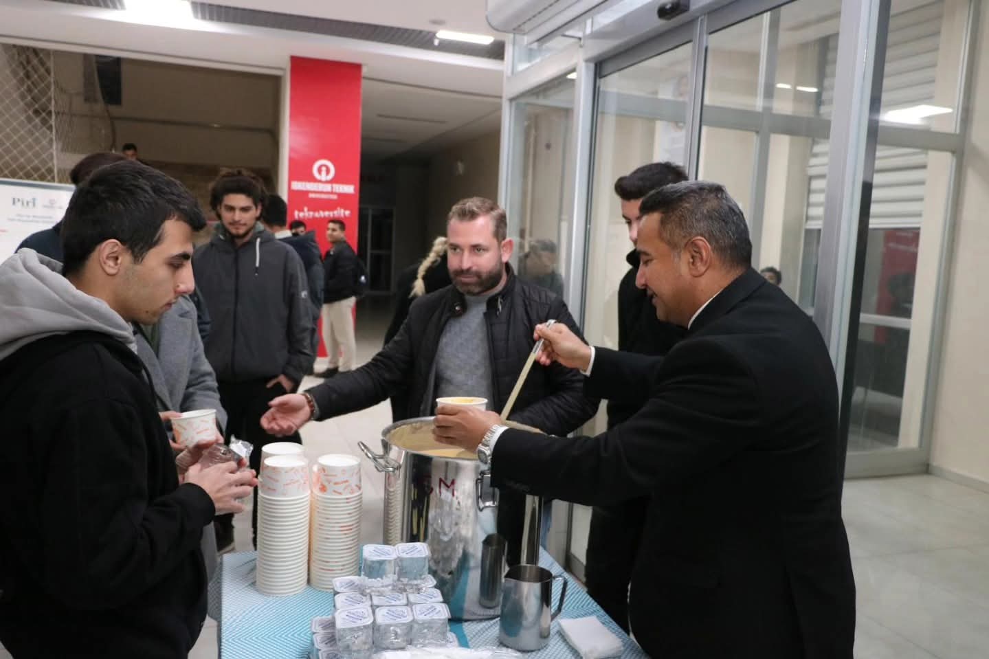 Öğrencilerin yoğun sınav temposunda moral ve motivasyonlarını artırmayı amaçlayan etkinlik, üniversite yönetimi ile öğrencileri bir araya getirdi. Merkez Kütüphane’de gerçekleştirilen çorba ikramına; Rektör Prof. Dr. Mehmet DURUEL’in yanı sıra Rektör Yardımcıları Prof. Dr. Nazif ÇALIŞ ve Prof. Dr. Erdoğan KANCA, İskenderun Belediye Başkan Vekili Tahsin ÖZTEKİN, Genel Sekreter Yılmaz BALAMAN, İskenderun Belediyesi ekipleri, akademik ve idari personel ile çok sayıda öğrenci katıldı. İskenderun Teknik Üniversitesi’nin öğrenci odaklı yaklaşımının bir göstergesi olan sıcak çorba ikramı, final sınavlarının sona ereceği 17 Ocak tarihine kadar her gün düzenli olarak öğrencilere sunulacak. İskenderun Teknik Üniversitesi, bu tür sosyal destek uygulamalarıyla öğrencilerinin akademik başarısının yanı sıra sosyal ve psikolojik iyi oluşunu da öncelemeye devam ediyor.