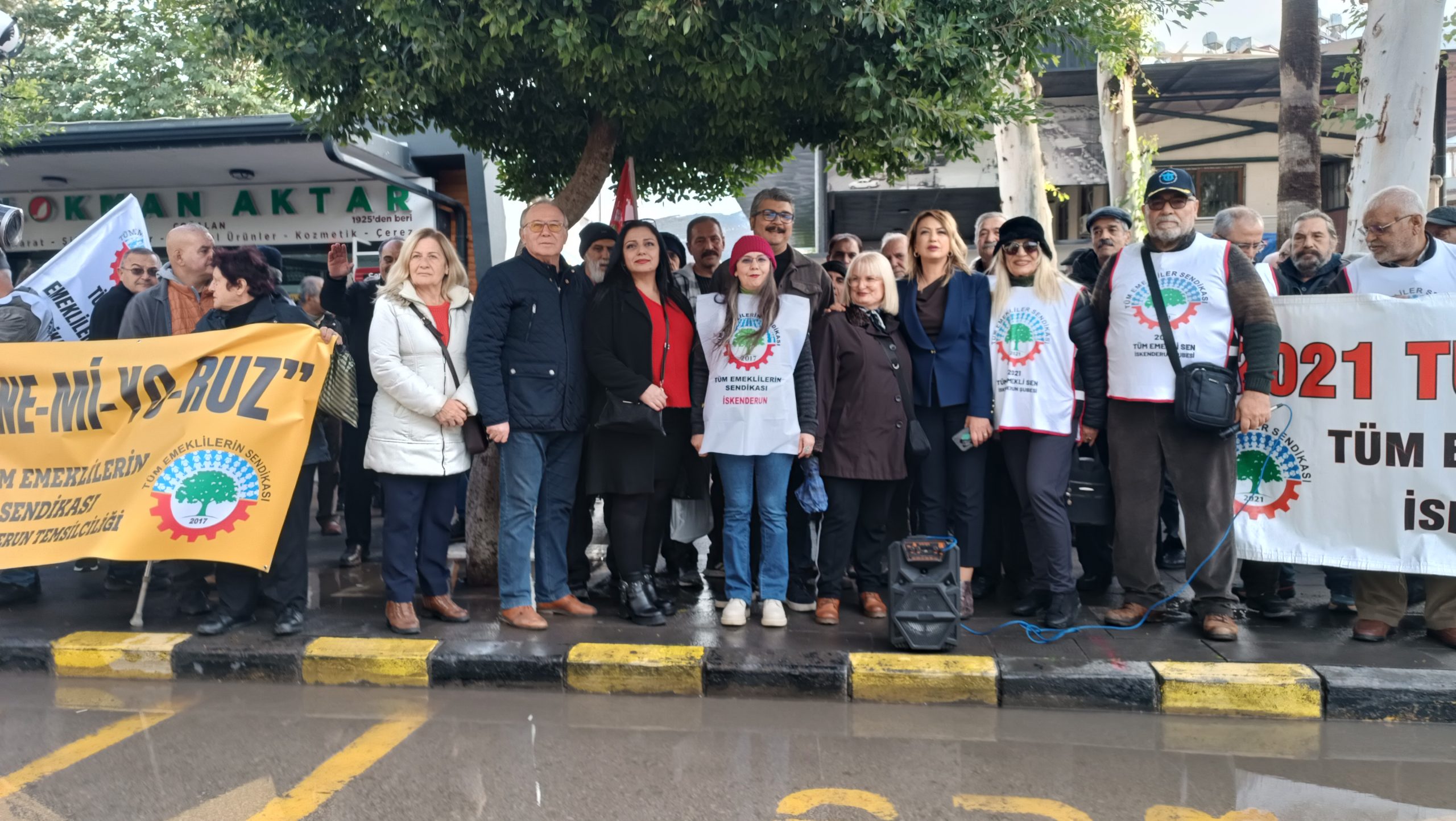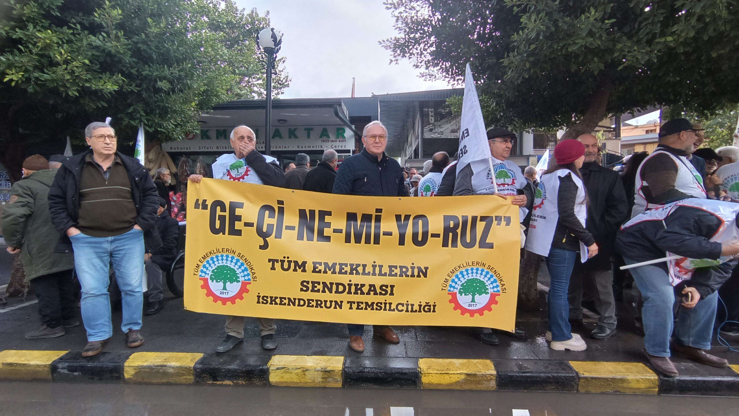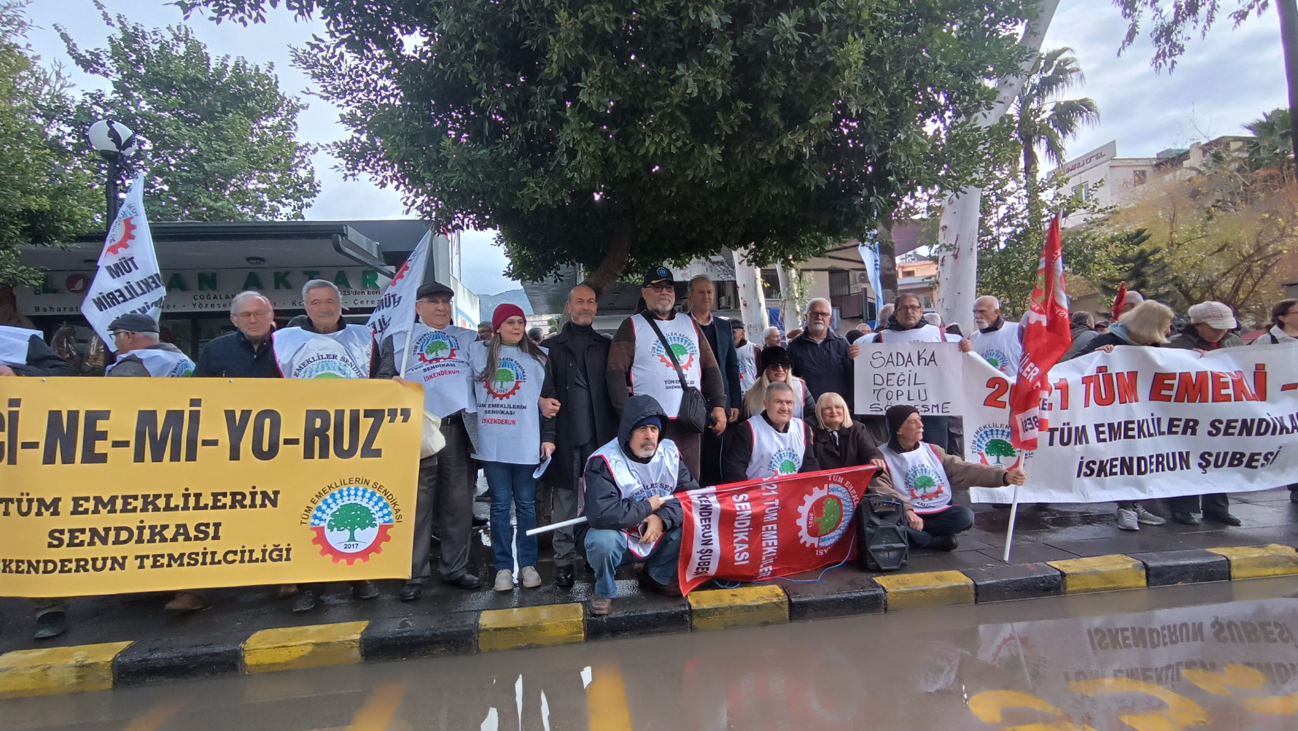 2021 Tüm Emekliler Sendikası İskenderun şubesi kurtuluş yok tek başına ya hep beraber ya hiçbirimiz diyerek İskenderun Ulucami caddesi üzerindeki sağlık parkı’nda emeklilerin taleplerini dile getirdiler.