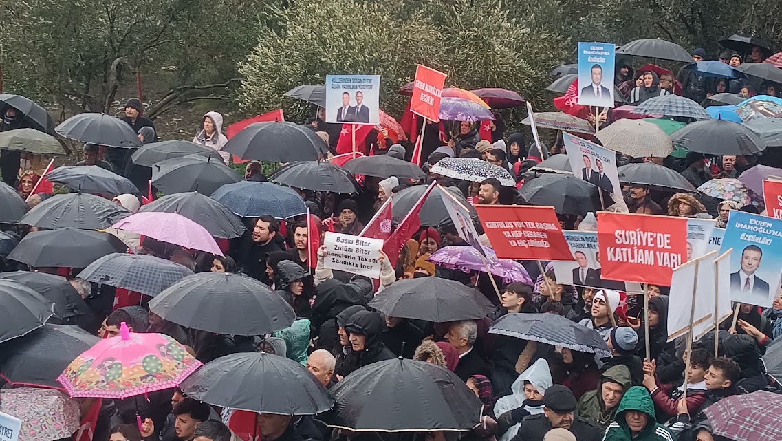 Yağmura rağmen mitingi terk etmeyen vatandaşlar, Özel’in konuşmasını sık sık alkışlar ve sloganlarla kesti. Miting, birlik ve dayanışma mesajlarıyla sona erdi.