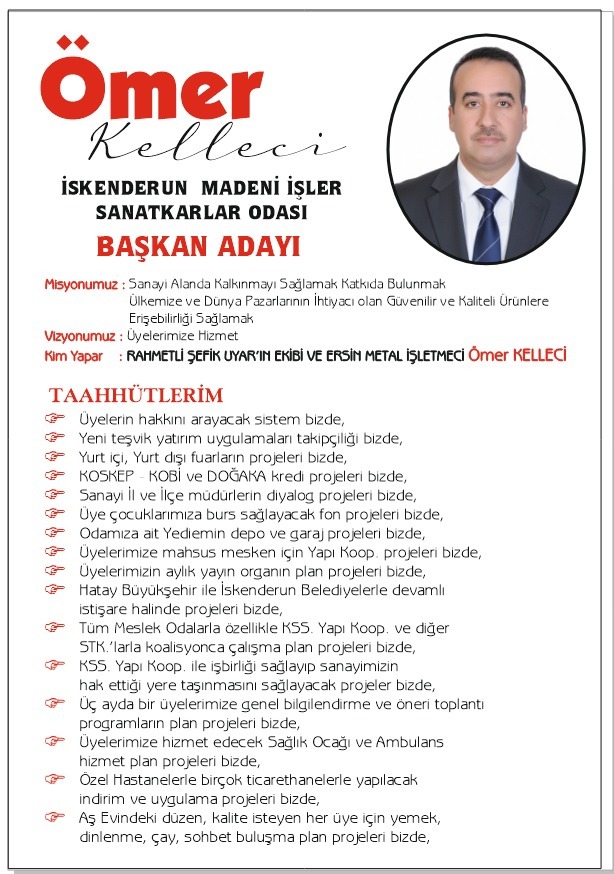 İskenderun Madeni İşler Sanatkârları Odası Başkan Adayı Ömer Kelleci: