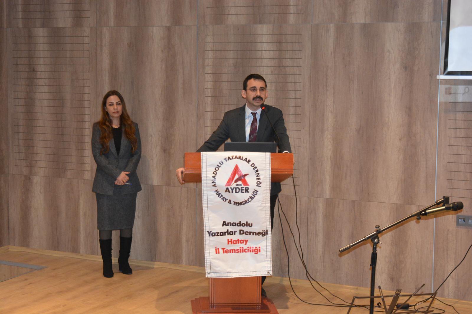 Program, Sunuculuğunu Eğt.Sair Zeliha Ceritoğlunun yaptığı, Anadolu Yazarlar Derneği Hatay İl Başkanı Eşref Türkeri’nin açılış; Kaymakam Onur Şanın ise Sunuş konuşmasıyla başladı. Türkeri konuşmasında, Anadolu’nun yalnızca bir coğrafya değil; şehit kanıyla yoğrulmuş, dua ile ayakta duran ve şiirle nefes alan mukaddes bir vatan olduğunu vurguladı. Vatan ve Bayrak temalı eserlerden oluşan Anadolu Şairler Antolojisi’nin, milletin ortak vicdanını ve tarihsel hafızasını yansıttığını ifade etti.