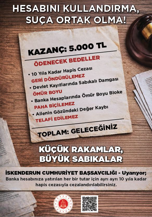 İSKENDERUN – İskenderun Cumhuriyet Başsavcılığı, dijital dolandırıcılık yöntemlerine karşı vatandaşları uyarmak ve toplumsal farkındalık oluşturmak amacıyla kapsamlı bir bilgilendirme kampanyası başlattı. Hazırlanan afiş ve kısa videolar, şehrin dört bir yanında vatandaşlarla buluşuyor.