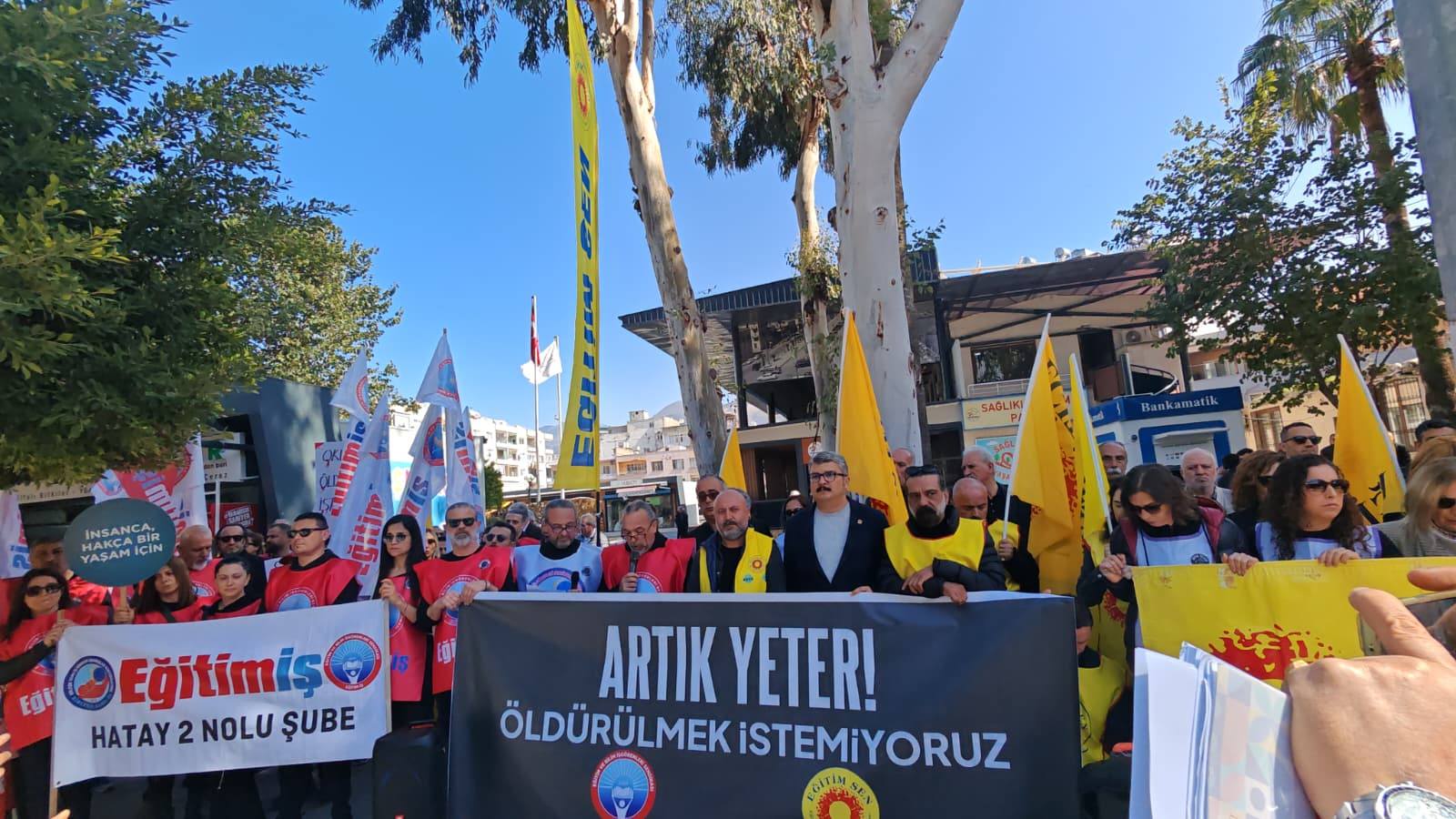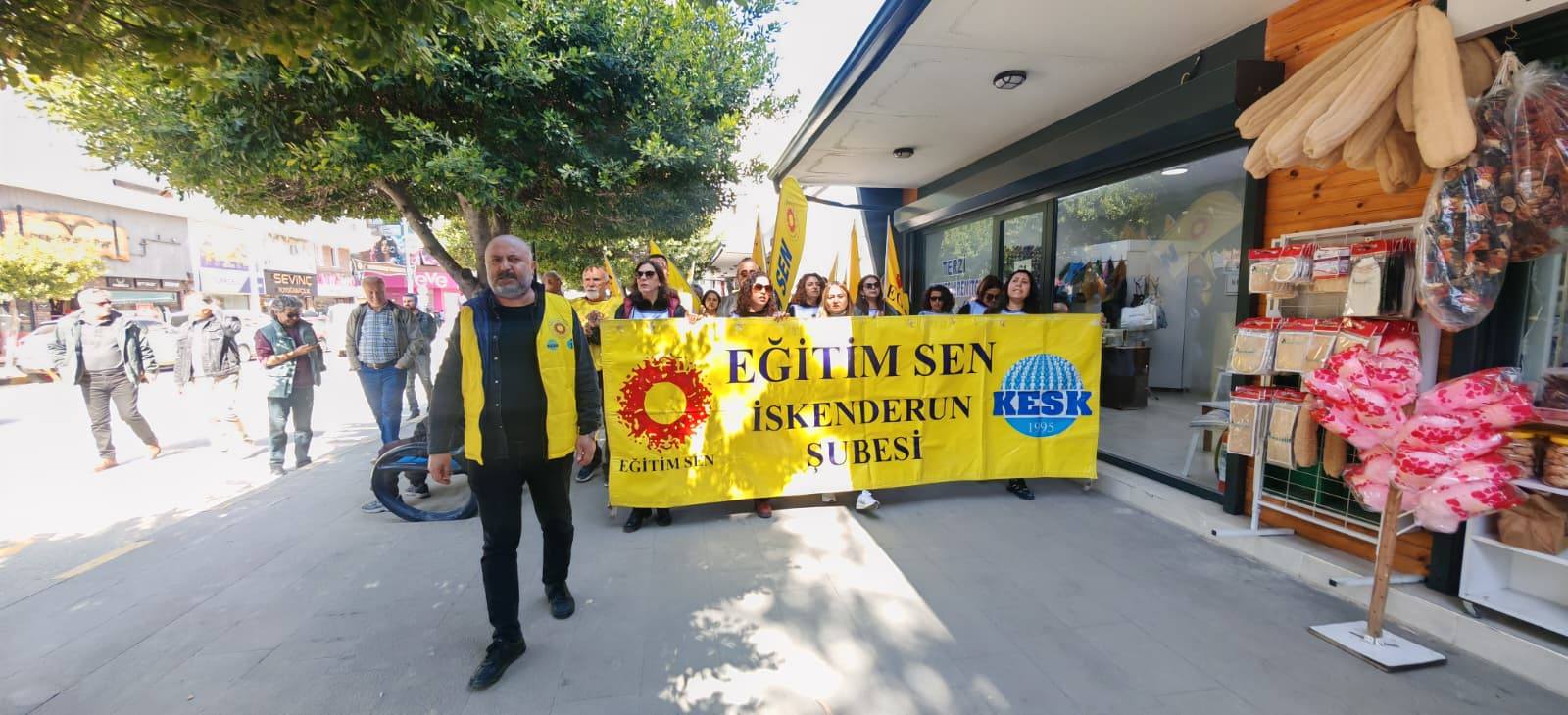 İskenderun’da eğitim emekçilerine yönelik şiddet olaylarına tepki göstermek amacıyla eğitimciler alanlara çıktı. Eğitim çalışanları, okullarda güvenli çalışma ortamı talebiyle bir araya gelerek şiddete karşı ortak duruş sergiledi.