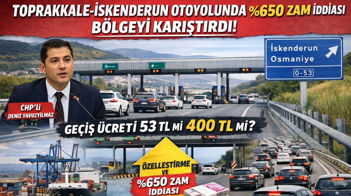 Hatay’ın İskenderun ilçesi ile Osmaniye’yi birbirine bağlayan Toprakkale–İskenderun Otoyolu için gündeme gelen zam iddiası bölgede büyük tartışma yarattı. CHP Genel Başkan Yardımcısı ve Zonguldak Milletvekili Deniz Yavuzyılmaz, söz konusu otoyol kesiminin özelleştirilmesi halinde geçiş ücretlerinin yüzde 650’ye varan oranda artabileceğini öne sürdü.