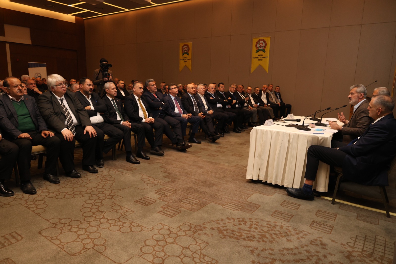 ATSO tarafından Antakya Müze Otel’de düzenlenen toplantıya AK Parti Hatay Milletvekili Kemal Karahan, Hatay Mustafa Kemal Üniversitesi (HMKÜ) Rektörü Veysel Eren, Payas Belediye Başkanı Bekir Altan, İskenderun Belediye Başkanı Mehmet Dönmez, Altınözü Belediye Başkanı Rıfat Sarı,