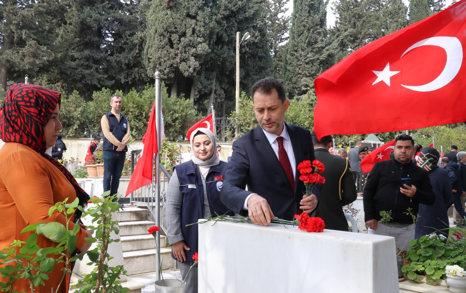 18 Mart Şehitleri Anma Günü ve Çanakkale Deniz Zaferi dolayısıyla Antakya Şehitliği’nde çelenk sunma töreni düzenlendi.