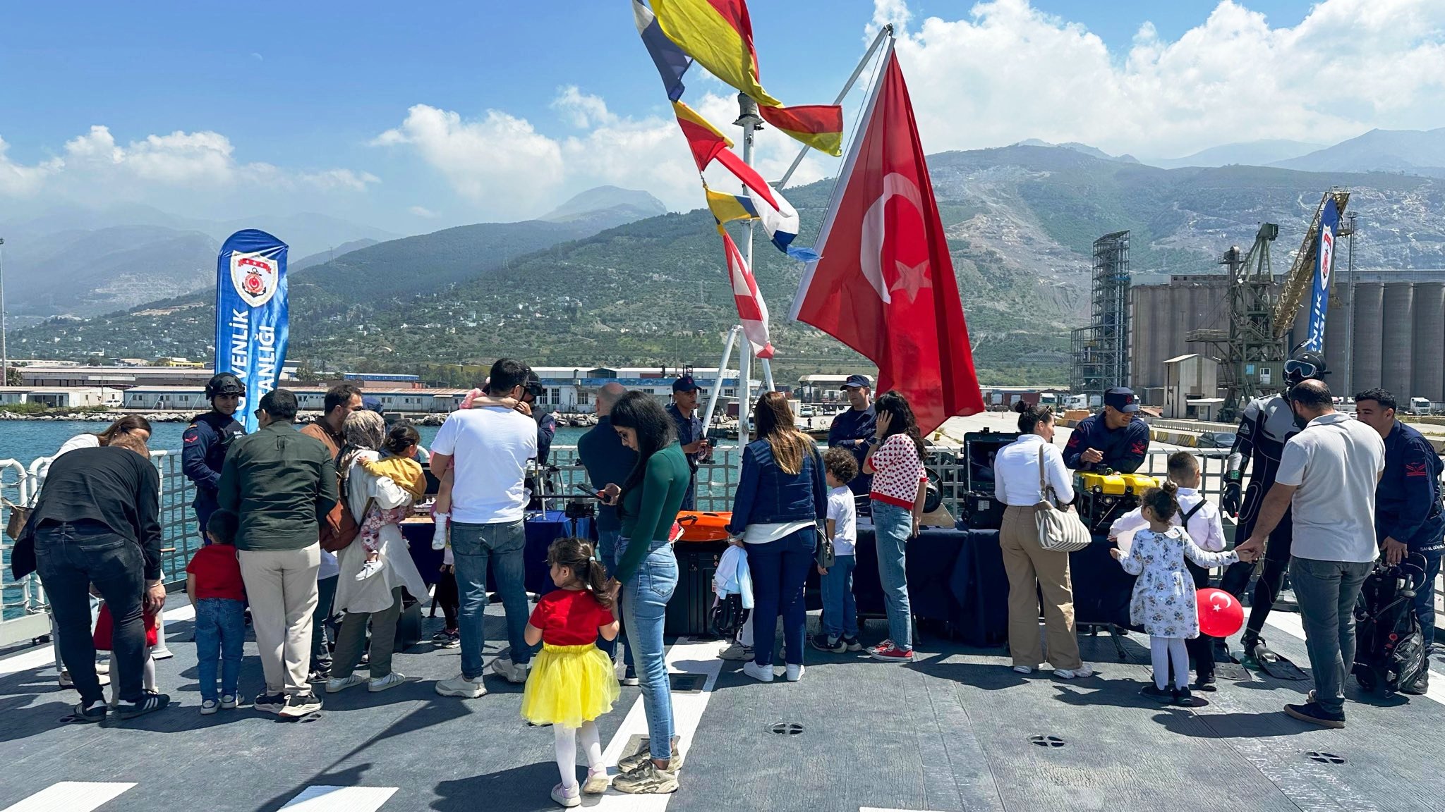 Ziyaret kapsamında, limanda bulunan Sahil Güvenlik gemisi vatandaşların da ziyaretine açıldı. Bayram dolayısıyla aileler çocuklarıyla birlikte gemiye yoğun ilgi gösterdi. Anneler ve babalar, çocuklarının ellerinden tutarak savaş gemisini gezdirirken, miniklerin heyecanı ve merakı dikkat çekti.